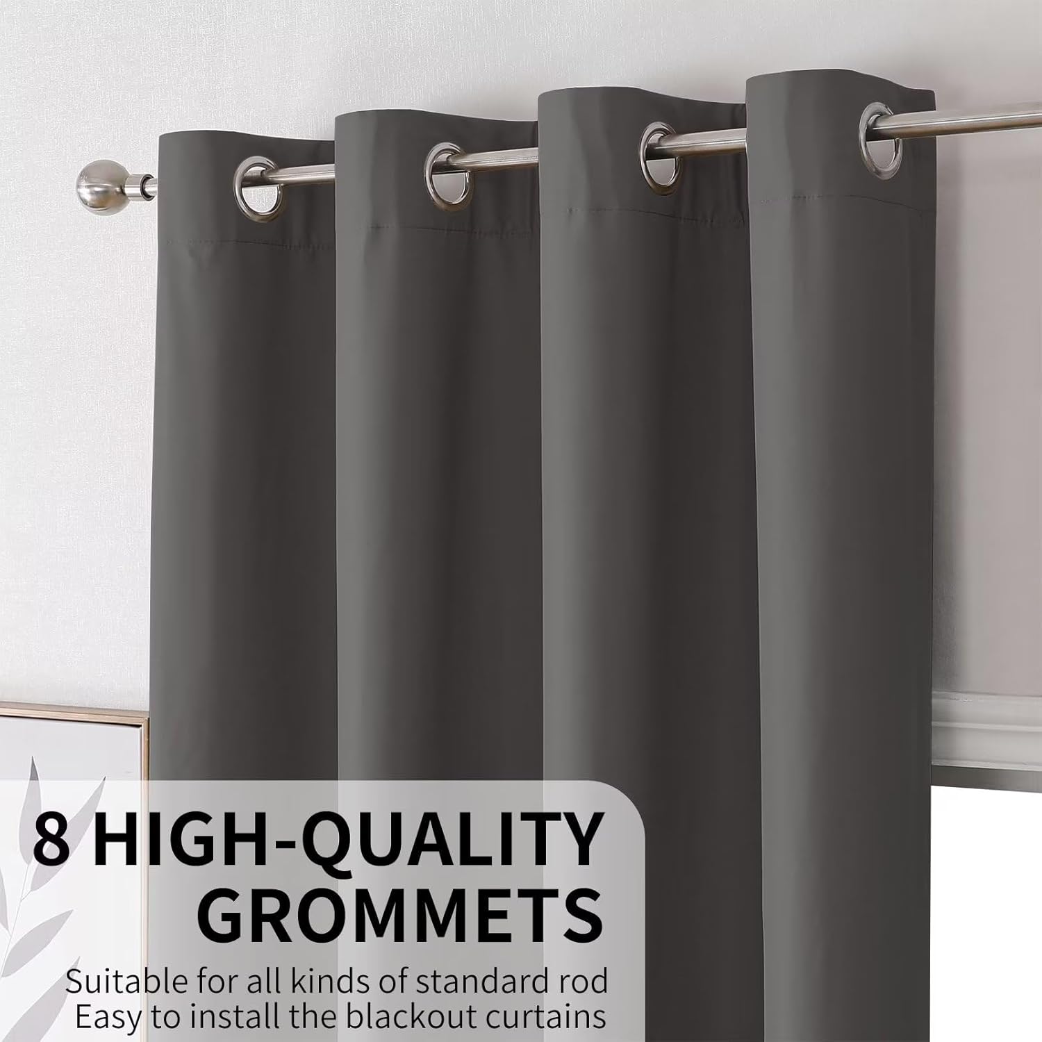 Joydeco Dark Grey Blackout Curtains 96 Inches Long for Bedroom, Room Darkening Black Curtains 96 Inches Long 2 Panels Set, Grommet Thermal Insulated 96 Inch Black Out Drapes 2 Panels for Bedroom