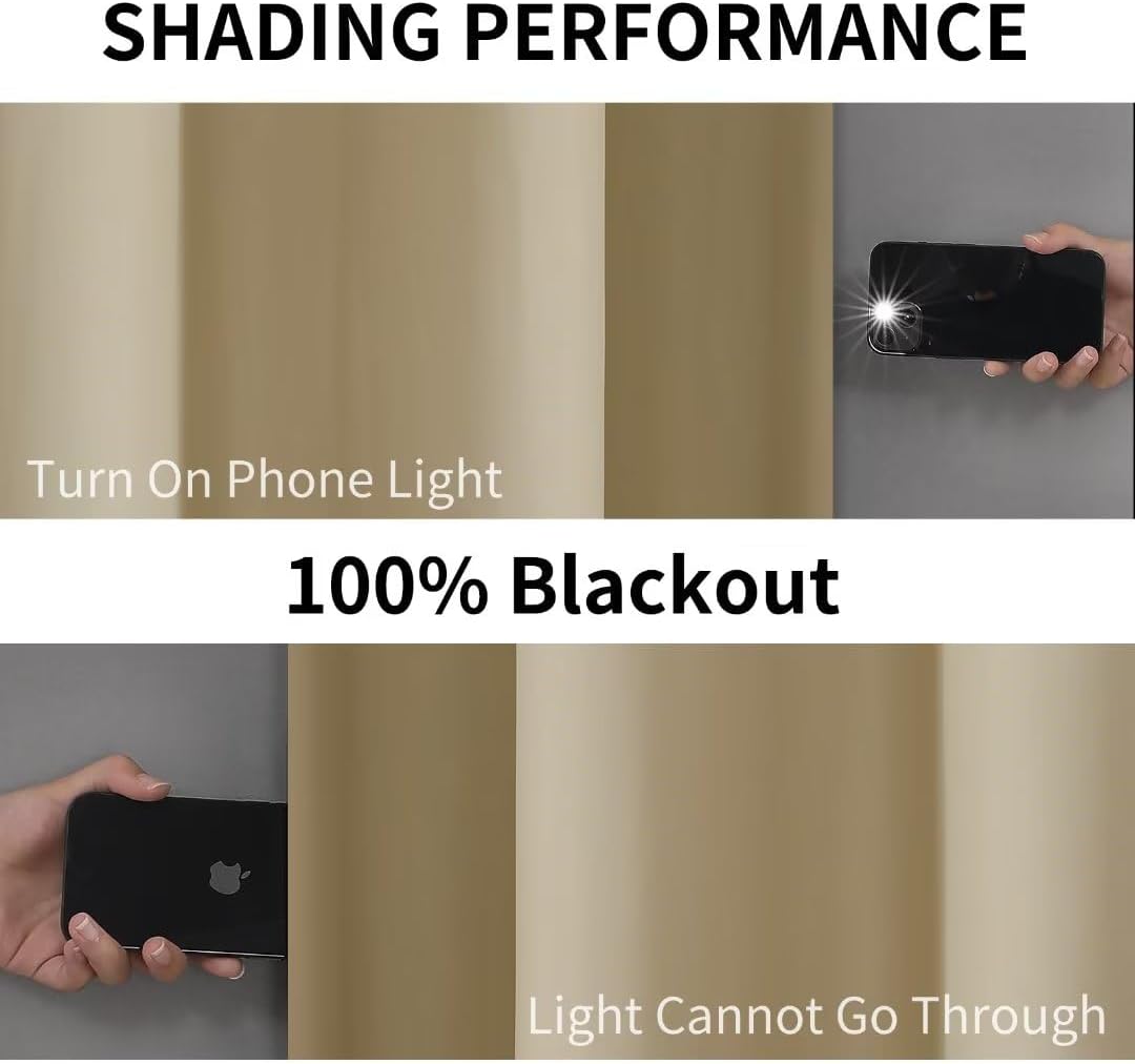 - 【Total Blackout】Joydeco curtains are a high-quality curtain with 100% blackout property. It adopts advanced blackout materials and production techniques, which can completely block external light penetration, providing excellent light control and privacy protection for you. Whether it is the intense sunlight during the day or the busy street lights, Joydeco curtains can effectively shield them, creating a dark, comfortable, and relaxing space.
