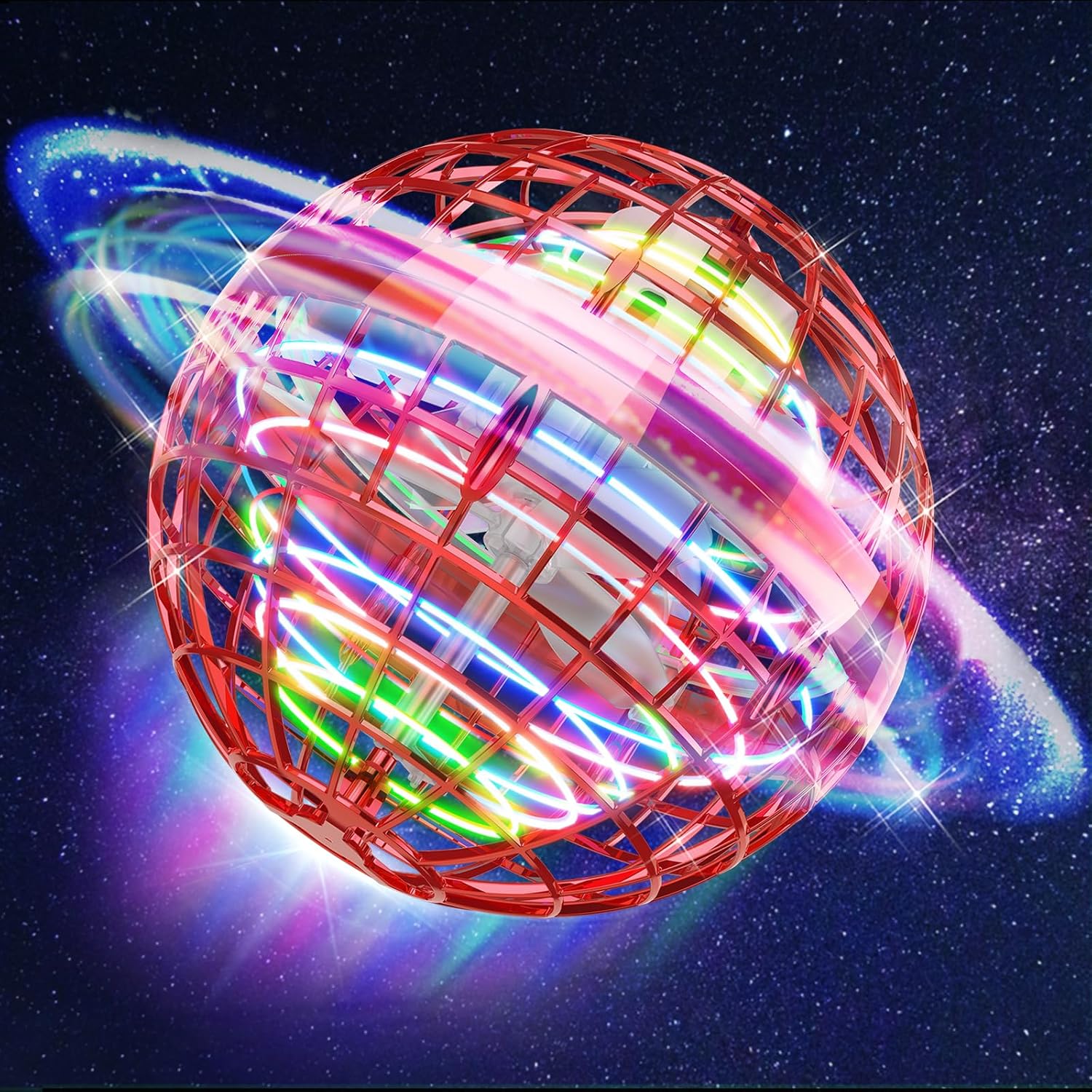 - 【Vibrant LED Light】The bright shining and colorful lights make flying ball really cool in a dark room at night. The best part is that nebula orb's shape seems like a mysterious UFO. You will love control nebula orb day and night.