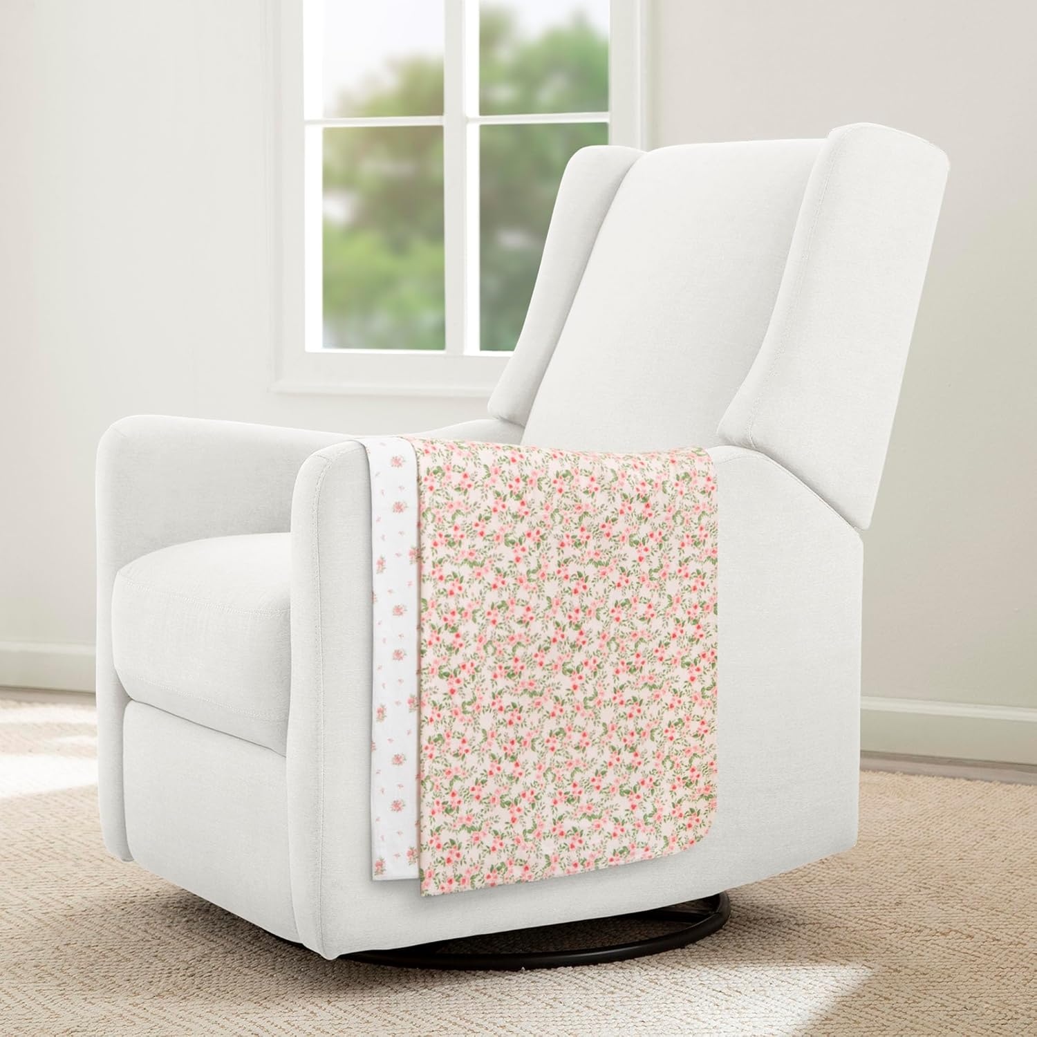 Delta Children 100% Cotton Flannel Baby Receiving Blankets for Girls and Boys – 30x30 Inches (Pack of 2), Pink Floral