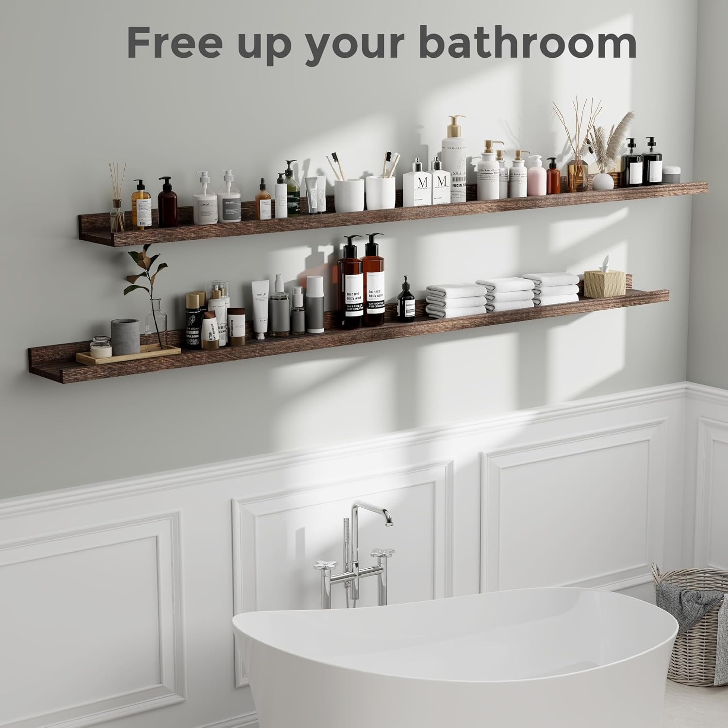 - 【Suitable for All Occasions】The sleek, simple design of wall mounted shelves allow them to match with nearly any aesthetic. The storage shelf can help to declutter or free up counter space in your kitchen and Bathroom to make places much tidier and neater - from keeping seasoning, spices bottles and wine glasses in a kitchen area to organizing hand towels, toiletries, essential oil in a bathroom.