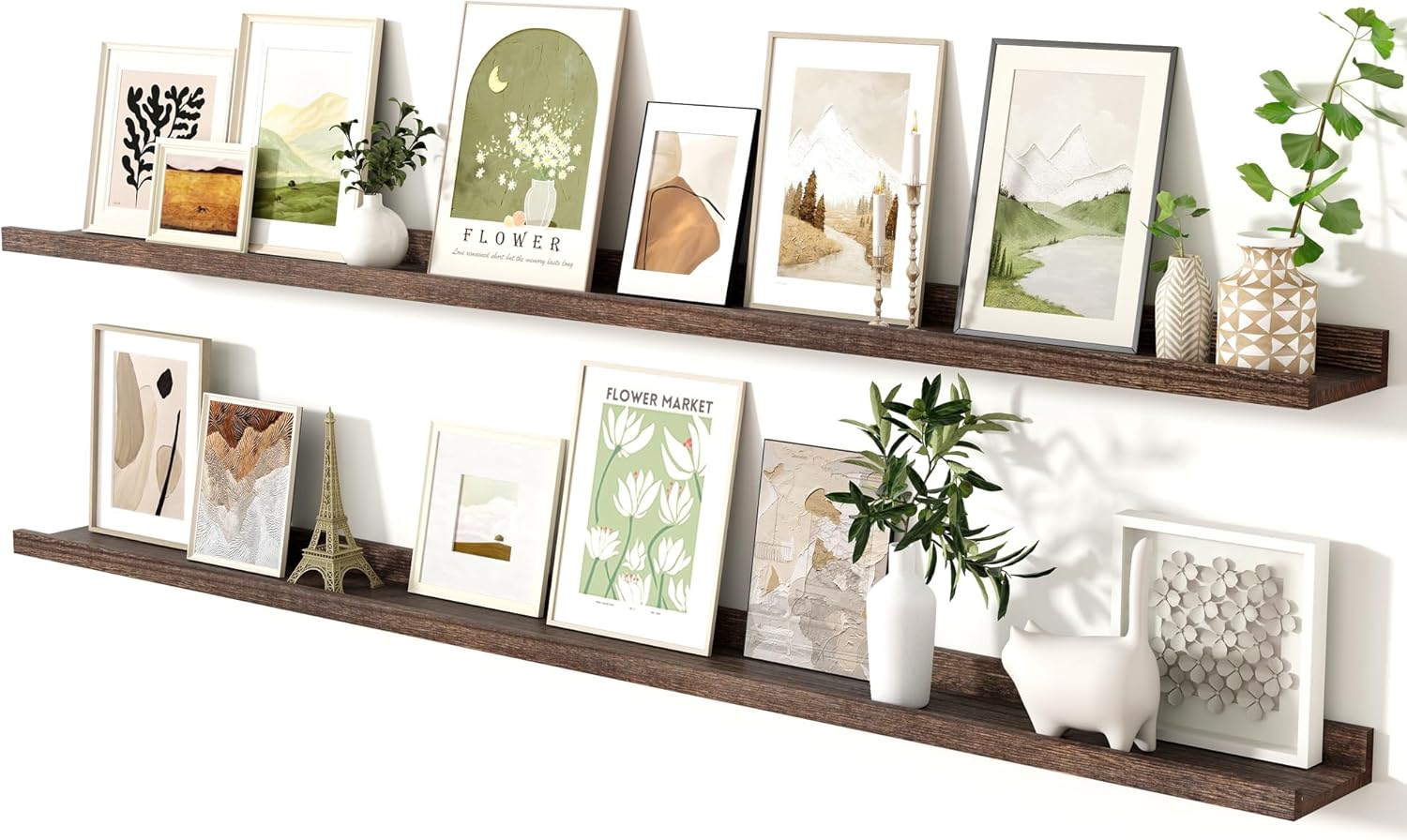 - 【Easy Installation & Breeze Disassembly】These rustic & versatile shelves come assembled in sets of 4. Easy to install when open carton box to hang them following instuction manual. When disassembling, just remove screws.