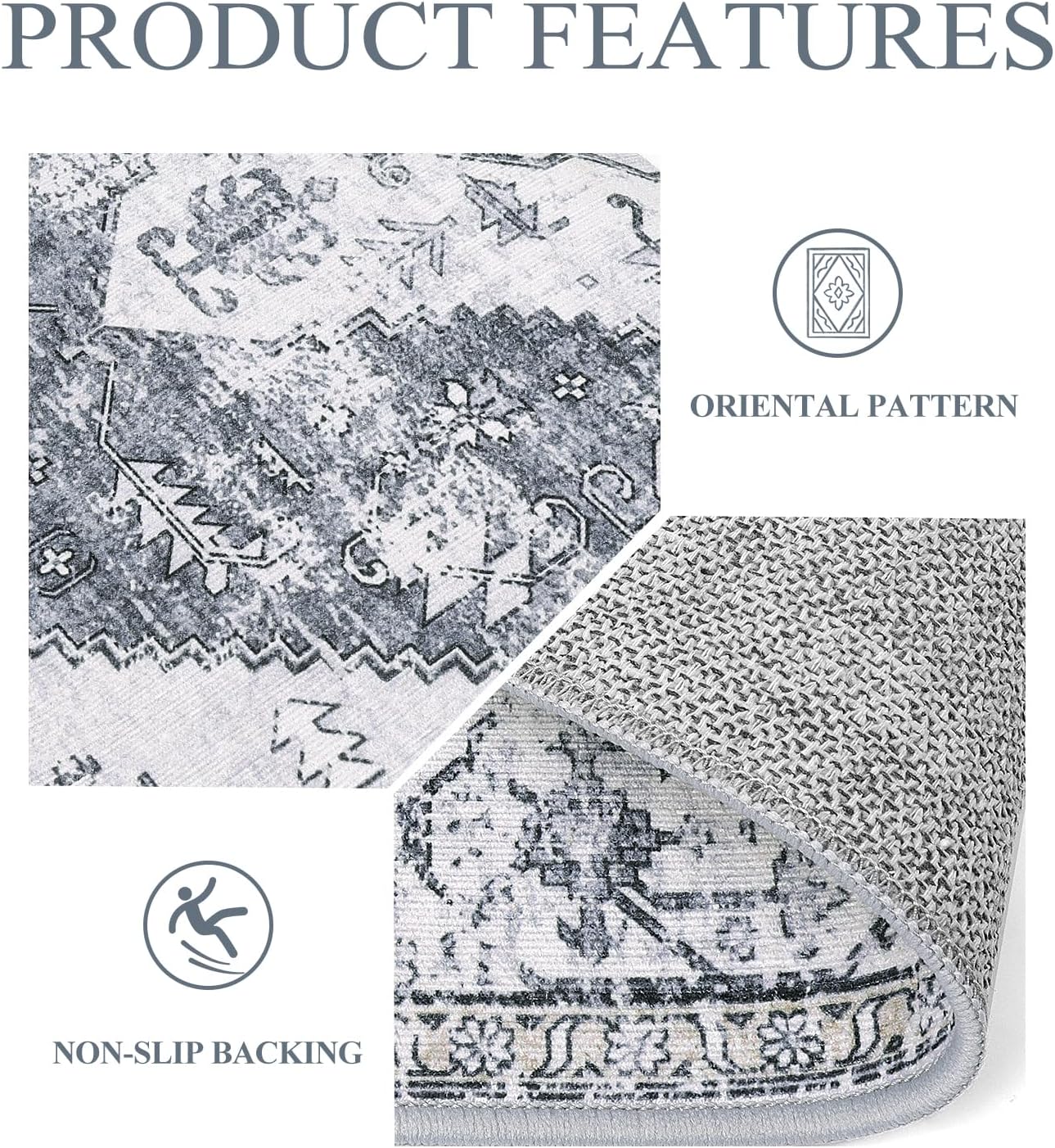 Lahome Boho Round Rugs - 4Ft Washable Non-Slip Small Round Area Rug for Bedroom Grey Lightweight Round Throw Rug, Oriental Distressed Print Indoor Circle Rugs for Bedroom Entryway Bathroom Kitchen
