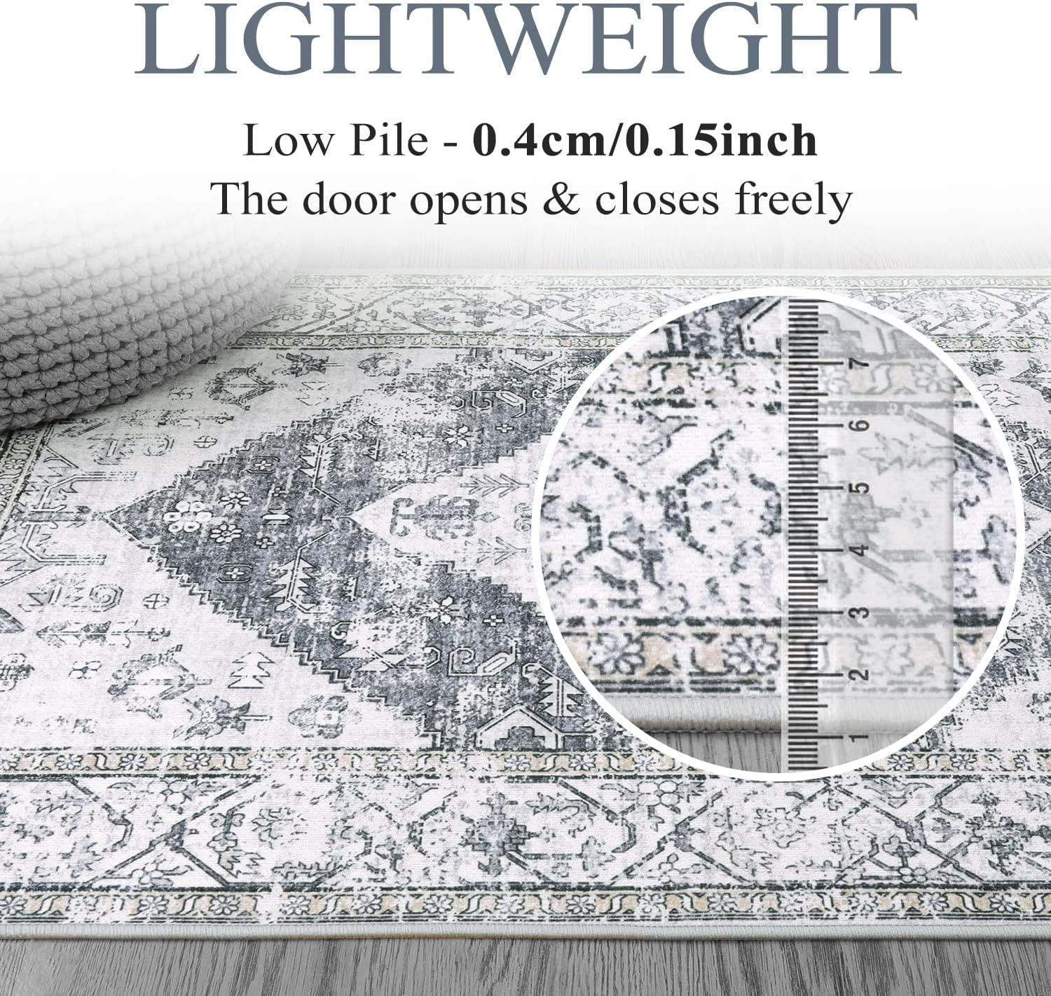 - Functional Lightweight Rug - Lahome ultra-thin rugs are made with everyday use in mind and high-traffic areas. 0.15 inches thickness allows for convenient placement in bedroom, living room and underneath furniture. The door opens and closes freely