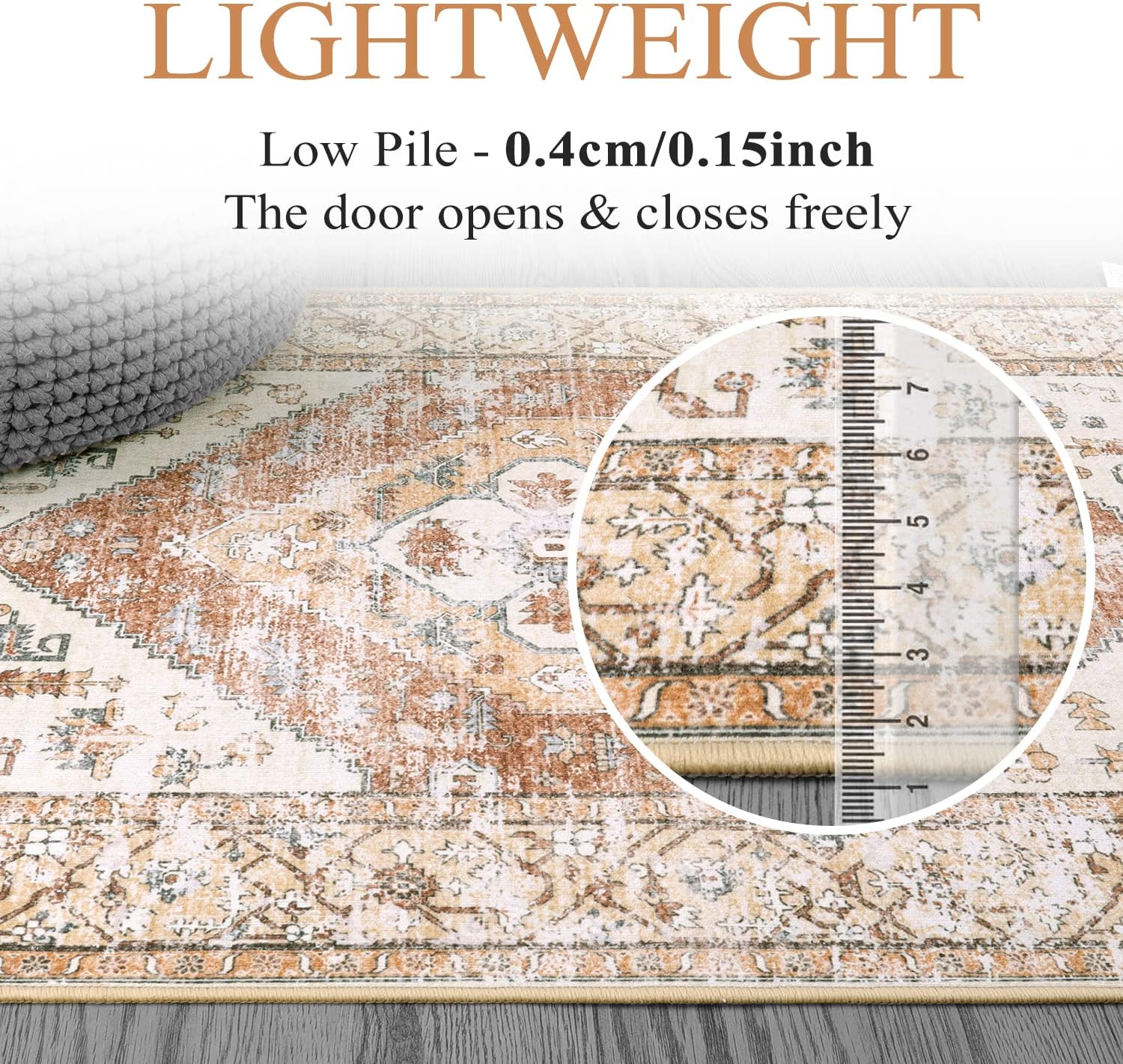 - Functional Lightweight Rug - Lahome ultra-thin rugs are made with everyday use in mind and high-traffic areas. 0.15 inches thickness allows for convenient placement in bedroom, living room and underneath furniture. The door opens and closes freely
