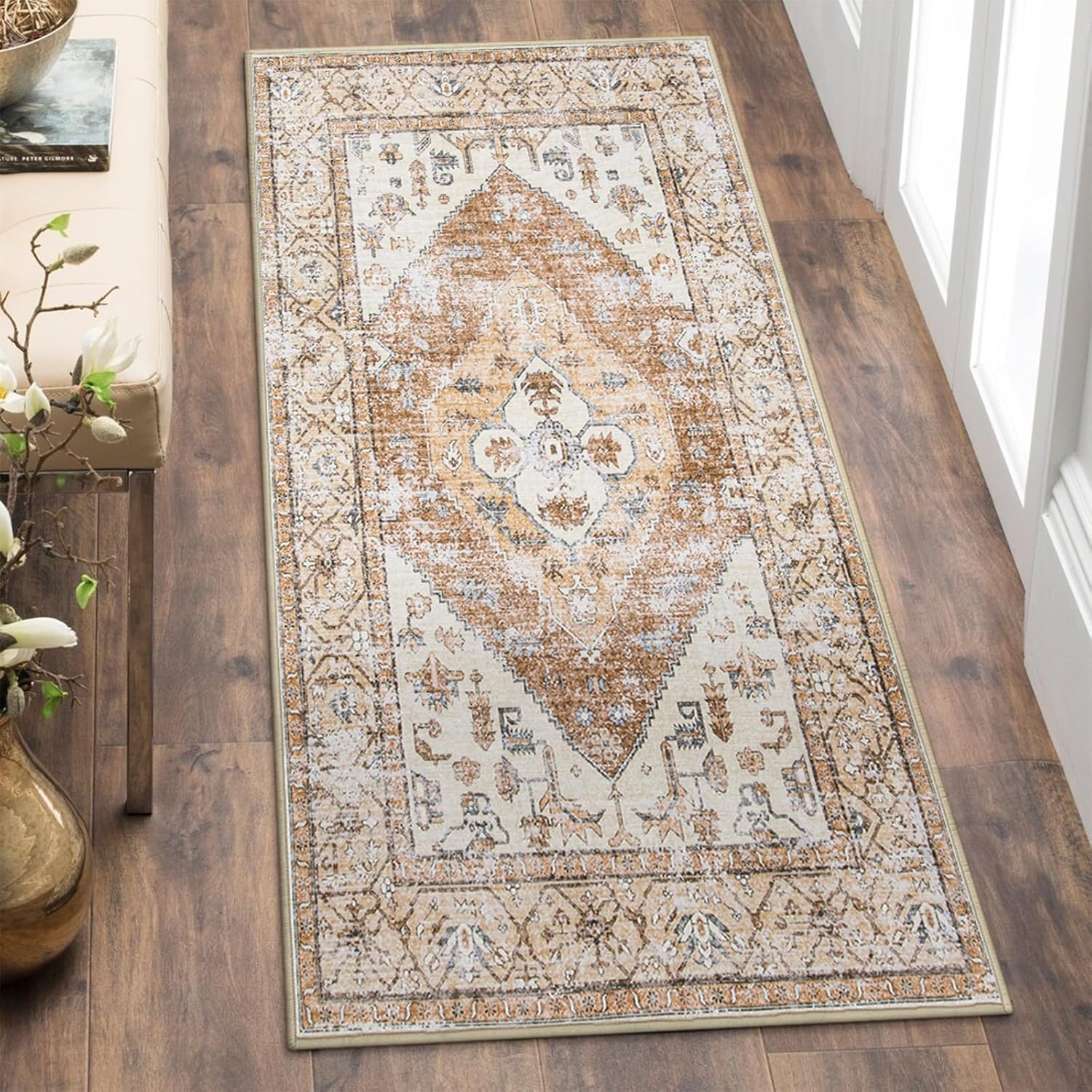 - Oriental Design: The indoor rug is made of comfortable top - 100% polyester, backing: Anti - Slip TPE material, which is lightweight, soft and stain resistant in daily use. Classic colors with elements of medallion and borders make your room vintage and vibrant