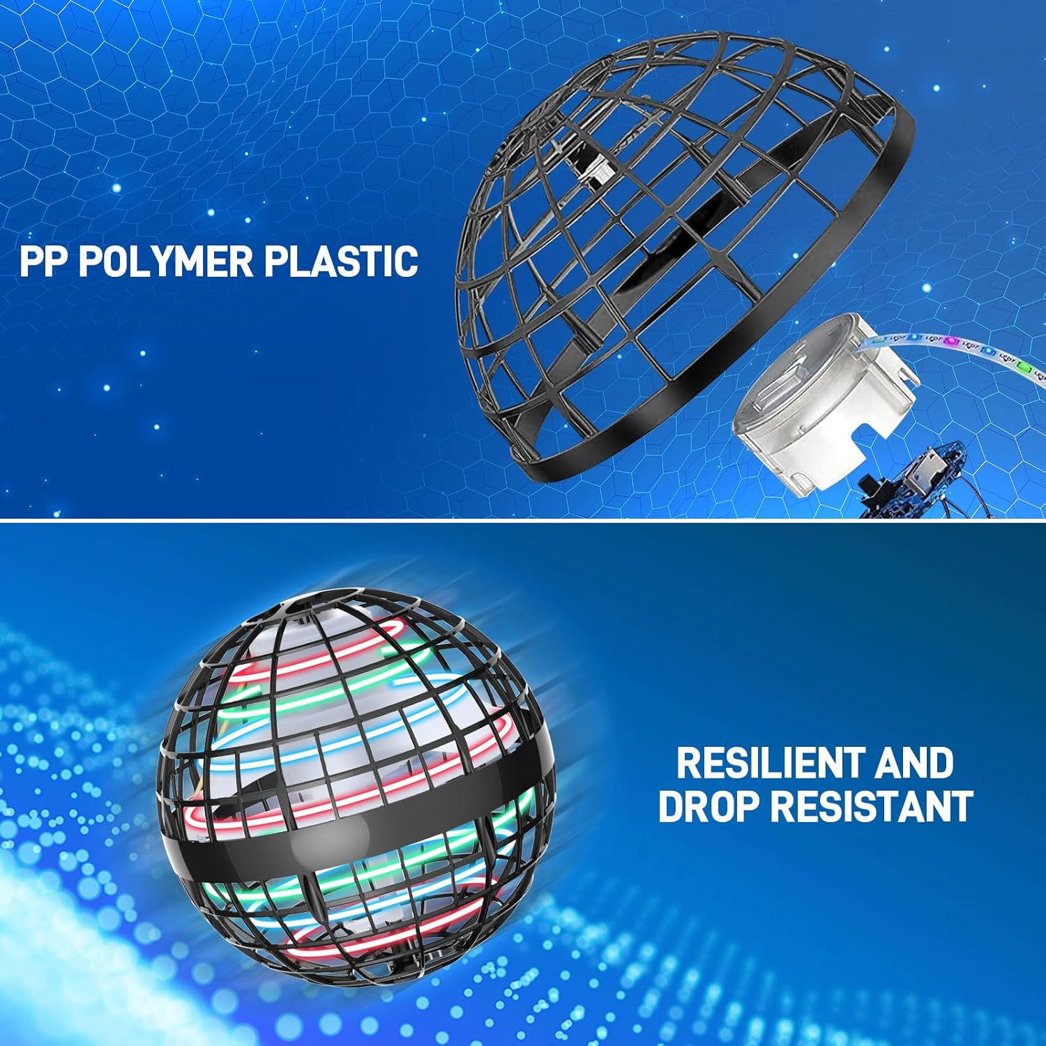 - 【Safety and Durable】This wonder sphere magic hover ball is made of premium PP material,lightweight and flexible,the spherical mesh shell has excellent elasticity and can withstand countless collisions,the built-in acceleration chip can stop the flight when it suffers a big impact.reasonable design prolongs the life of the magic ball and protects the player's safety at the same time.