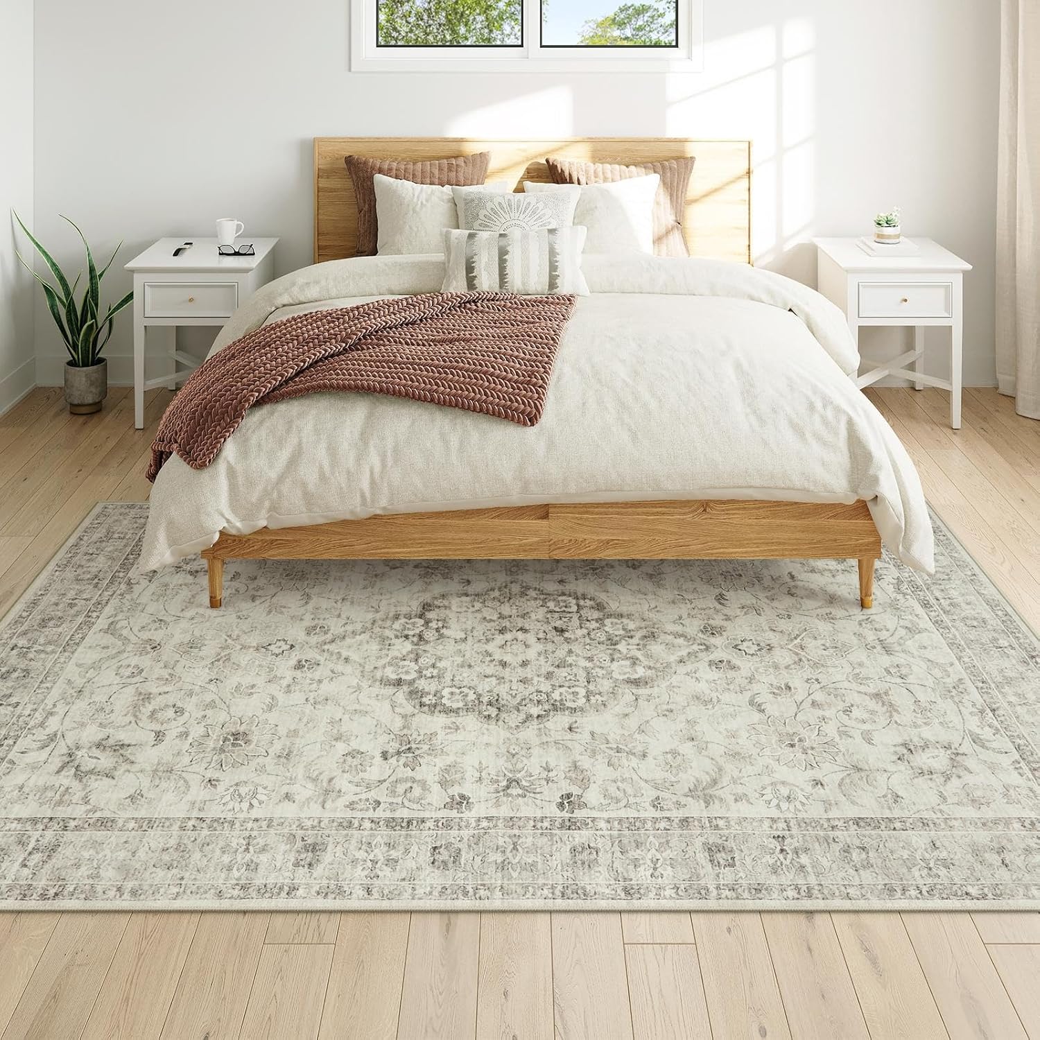 LIVEBOX Washable Area Rug 5x7 Rugs for Living Room Bedroom, Non-Slip Boho Indoor Carpet for Dining Room Office, Low-Pile Farmhouse Soft Carpets for Kids Nursery Room Playroom, Taupe