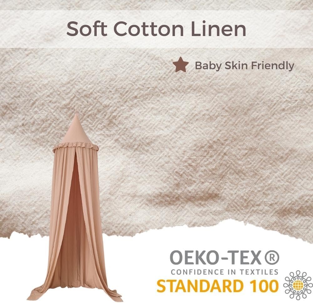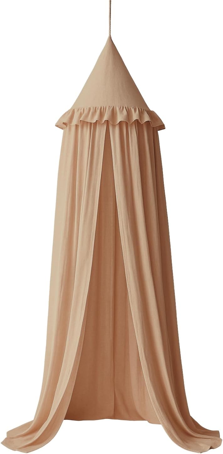 Wonder Space Kids Bed Canopy with Ruffles, Pastel Neutral Color for Boys & Girls, Frilled Cotton Tent Nursery Room Baby Crib Hanging Curtain Mosquito Netting Children Reading Nook Decoration (Nougat)
