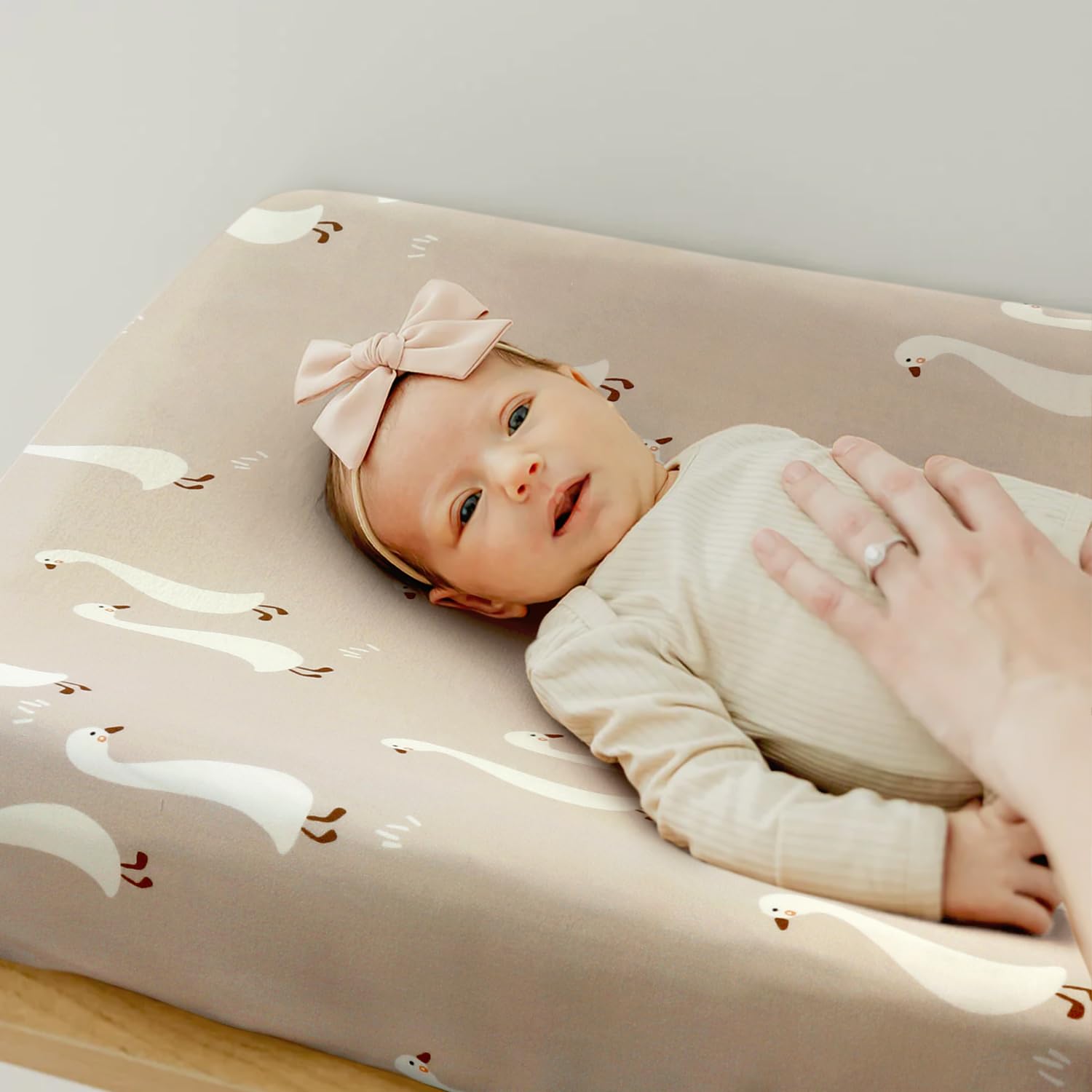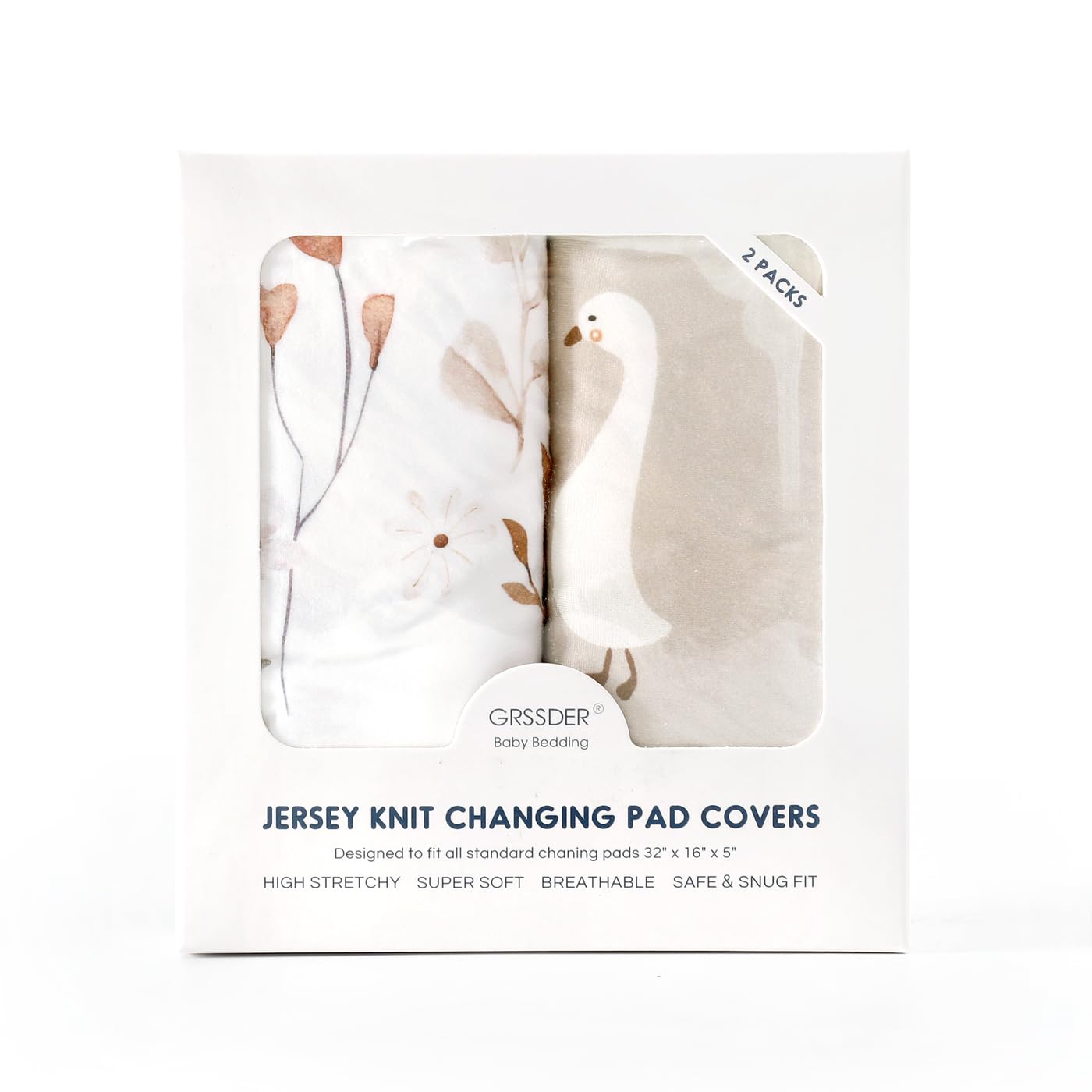 - Ultra Soft & 4-way Stretch: Made of high quality soft stretchy jersey knit fabric. GRSSDER changing pad covers offer a breathable, sweat-absorbent tee shirt like feel for exceptional comfort, providing your little ones a safe and to stay in place throughout the day.