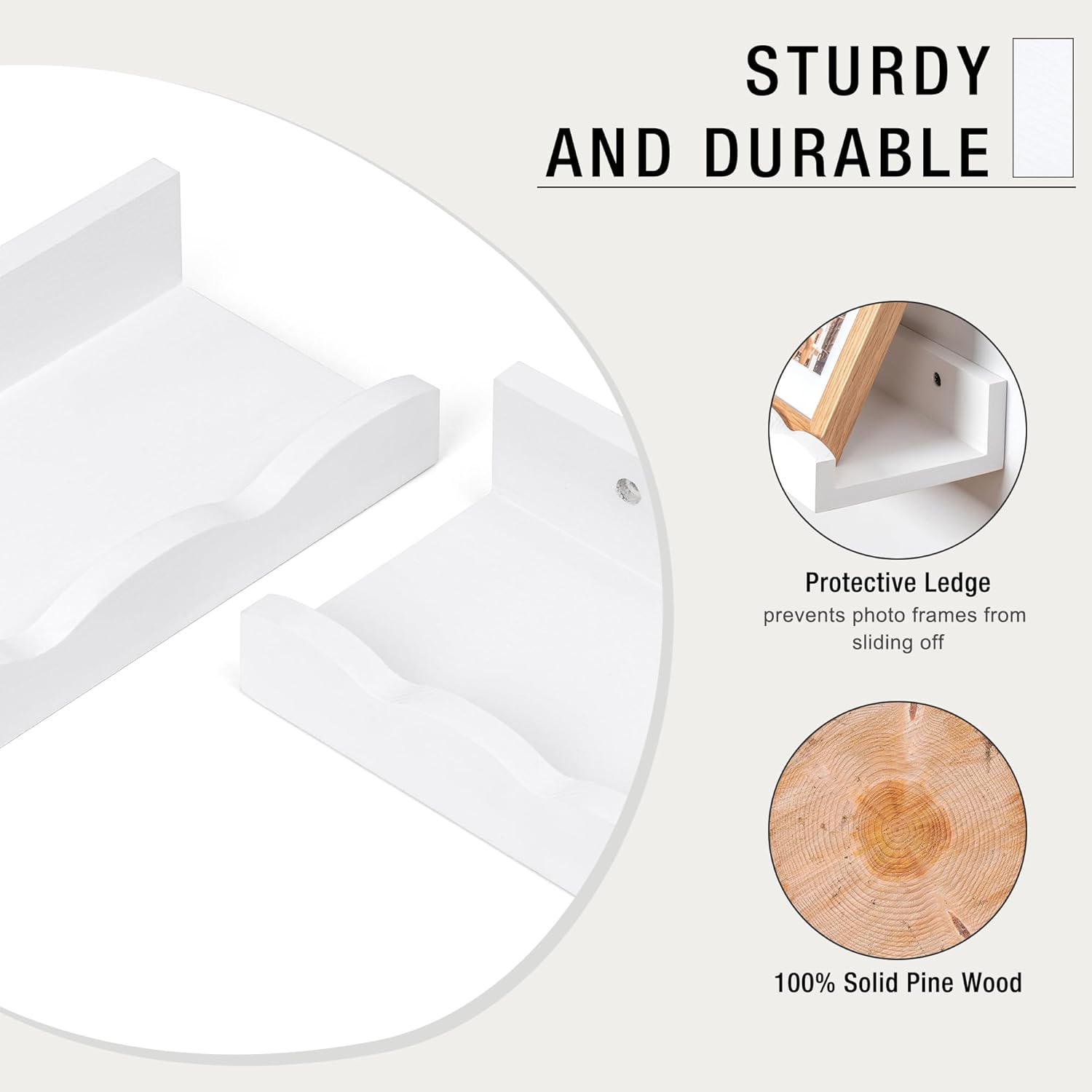 - 【Picture Ledge Shelves】With its effective wave design, these shelves reliably prevent items from falling off, providing a secure storage solution. You can easily organize your home space by placing picture frames, small plants, photo frames, books, toilet paper, bath towels, or decorations on these versatile shelves.