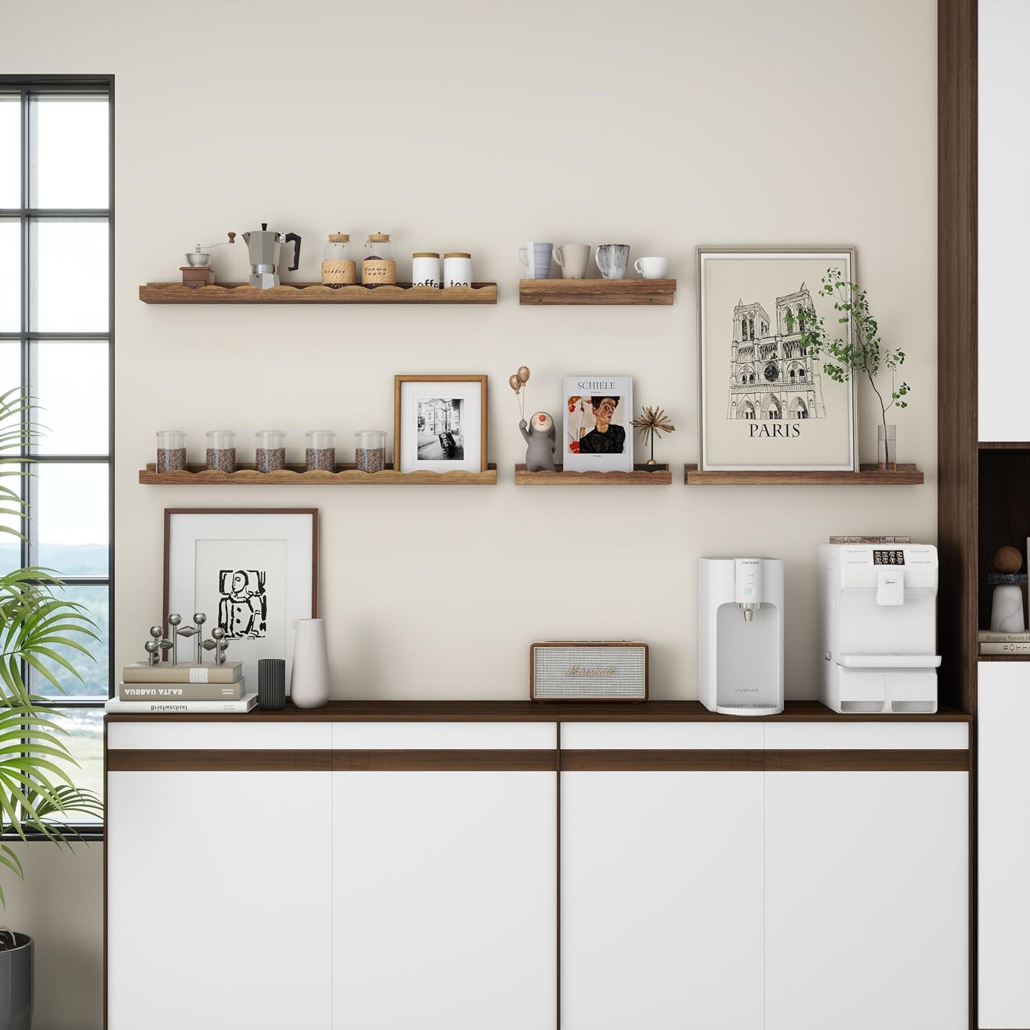 - 【Picture Ledge Shelves】With its effective wave design, these shelves reliably prevent items from falling off, providing a secure storage solution. You can easily organize your home space by placing picture frames, small plants, photo frames, books, toilet paper, bath towels, or decorations on these versatile shelves.