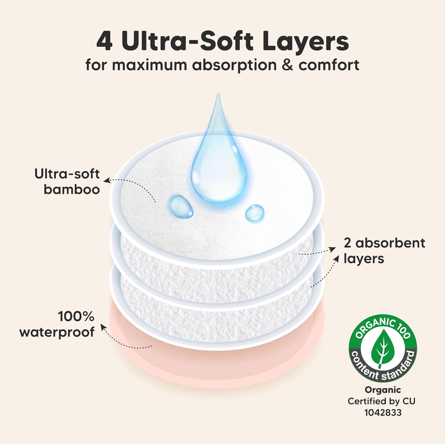 - Great For Leakages – Leakage is a thing of the past with our 4-layer nursing pads. KeaBabies Nursing Pads feature three layers of ultra-absorbent viscose derived from bamboo, sealed with a protective waterproof outer layer for extra security on the nipple pads. Tip: If you experience a heavy flow, please replace breast pads every 5-6 hours.
