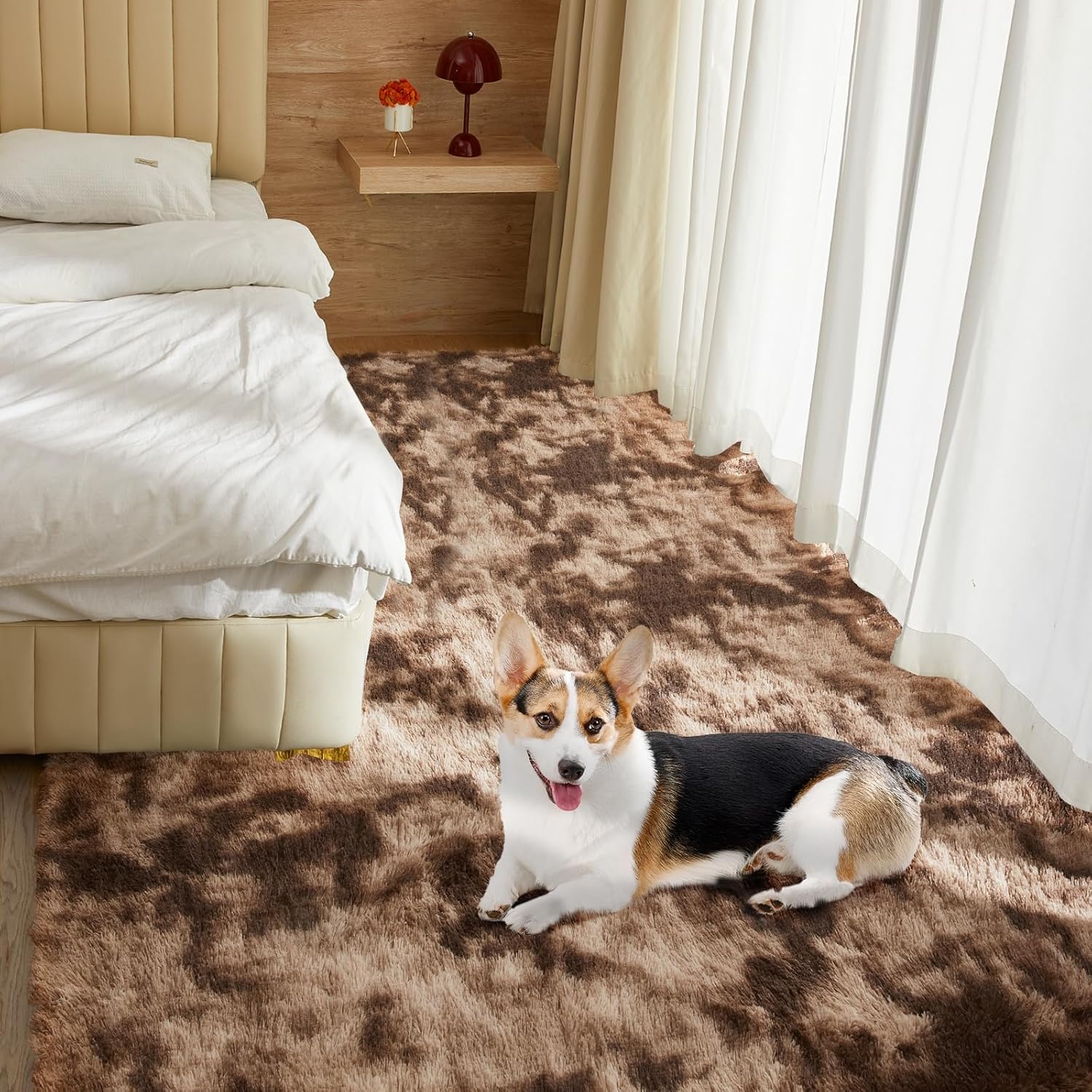 Ultra Soft Rug for Living Room, 4X6 Fluffy Shag Area Rug for Bedroom, Modern Shaggy Carpets Fuzzy Rug for Teens Dorm Nursery Home Decor Aesthetic, Upgrade Anti-Skid Durable, Tie-Dyed Coffee