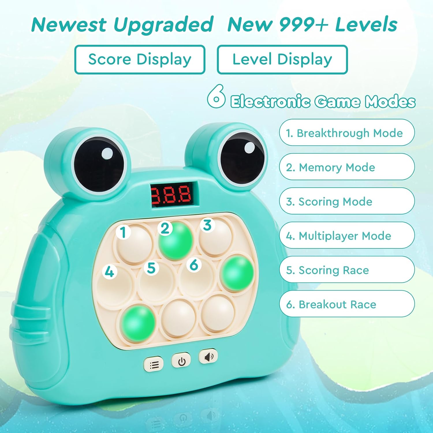 Fast Push Bubble Game, Pop Light Up Game Pop Fidget Toys, Quick Push Console Sensory Toys, Stress Relief Bubble Pop Puzzle Machine for Kids and Adults(Frog Green)