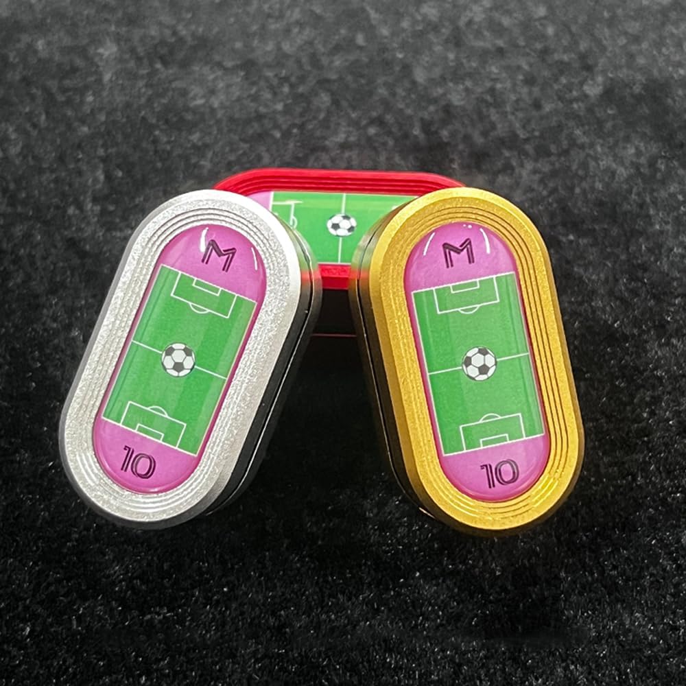- 【Excellent Fidget Slider Toy】- These fidgets slider toys is entirely made of Aluminum Alloy. The front and back of the slider feature a soccer style pattern and covered with clear resin. This enhances the friction of the push while clearly displaying the internal pattern. The pattern features the jersey number of current soccer legend #10. Every detail of the slider has been precisely machined, and the surface treatment is delicate and smooth, making it more comfortable to hold.