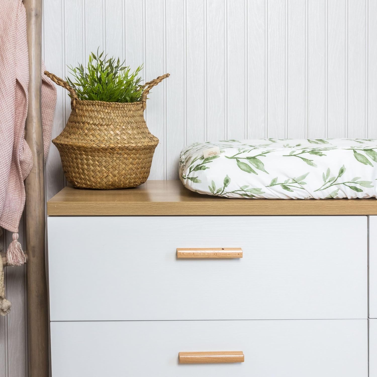 Crane Baby Green Leaf, Quilted Changing Pad Cover, 100% Cotton Sateen, 16in X 32in, Fitted with Elastic, Soft, Machine Washable, Neutral Nursery Essential