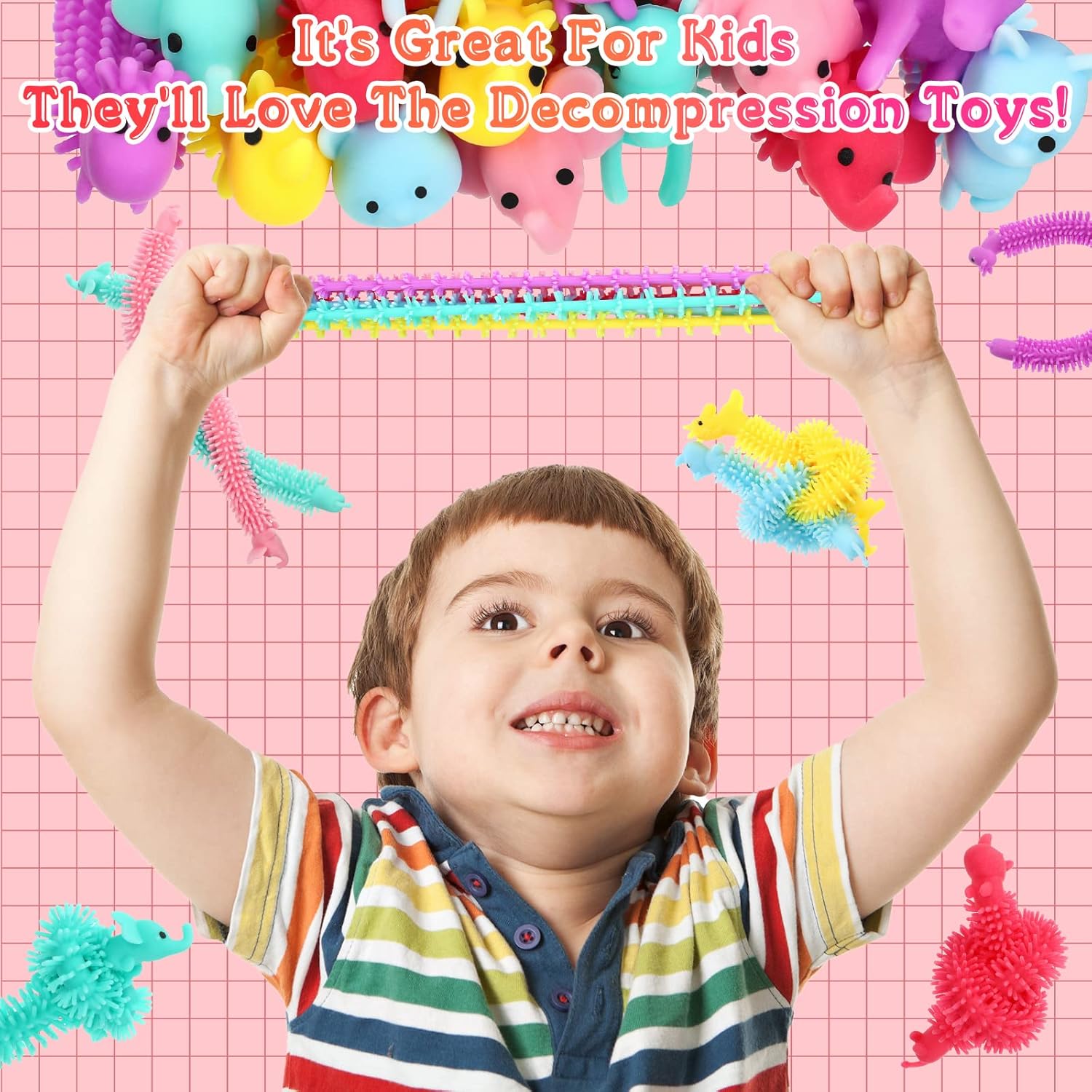 - caterpillar fidget toys animal sensory stretchy pack bulk squeeze strings worm autism stretch dinosaur unicorn kids adult boys girls gifts easter basket stuffers textured autistic rope ramen textured rubber favors