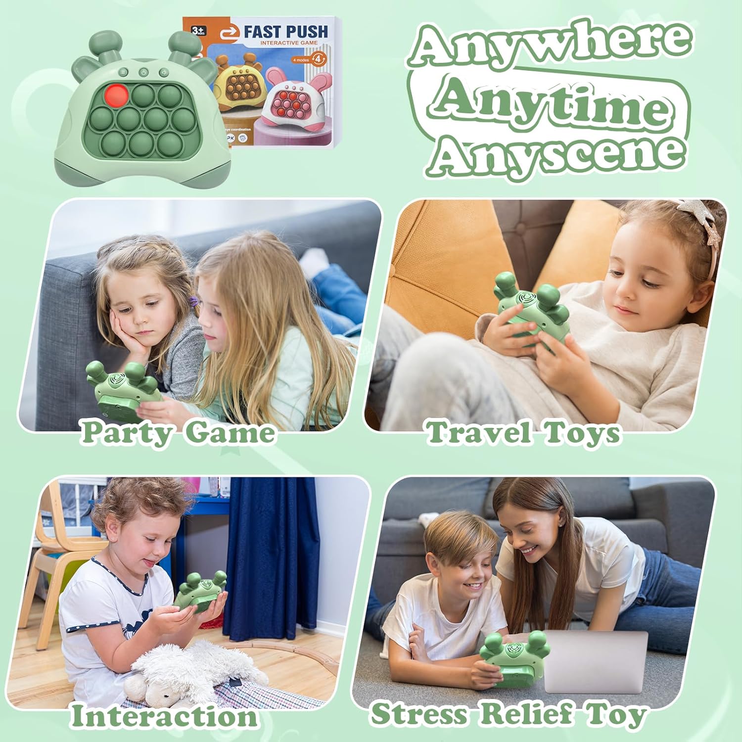 - 🎈【Interactive Handheld Pop Console Game】-- St. Patrick's Day Quick push game, perfect for releasing kids stresses and enhancing sensory stimulation. Meanwhile, it attracts kids and adults playing for hours away from their phones and computers, effectively reducing screen time, protect their eyes. The novel game mode can also help you concentrate, beat boredom and relieve study, work and office pressure, generate happiness. The design makes it a great STEM toy for improving focus and engagement.