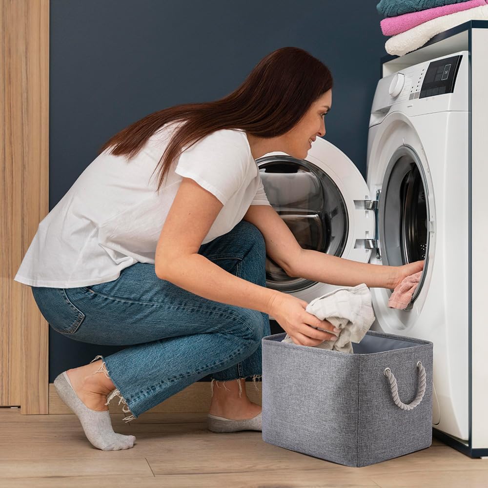 - It includes 2 pack small storage baskets. Sophisticated and practical. Used as closet organization bins, room storage boxes, living room, laundry organizing, basement, cat & dog toy holder, nursery, clothes basket, , garage storage, book and magazine organizer, makeup basket, bathroom towel and toilet storage, shelf fabric drawers and many other uses