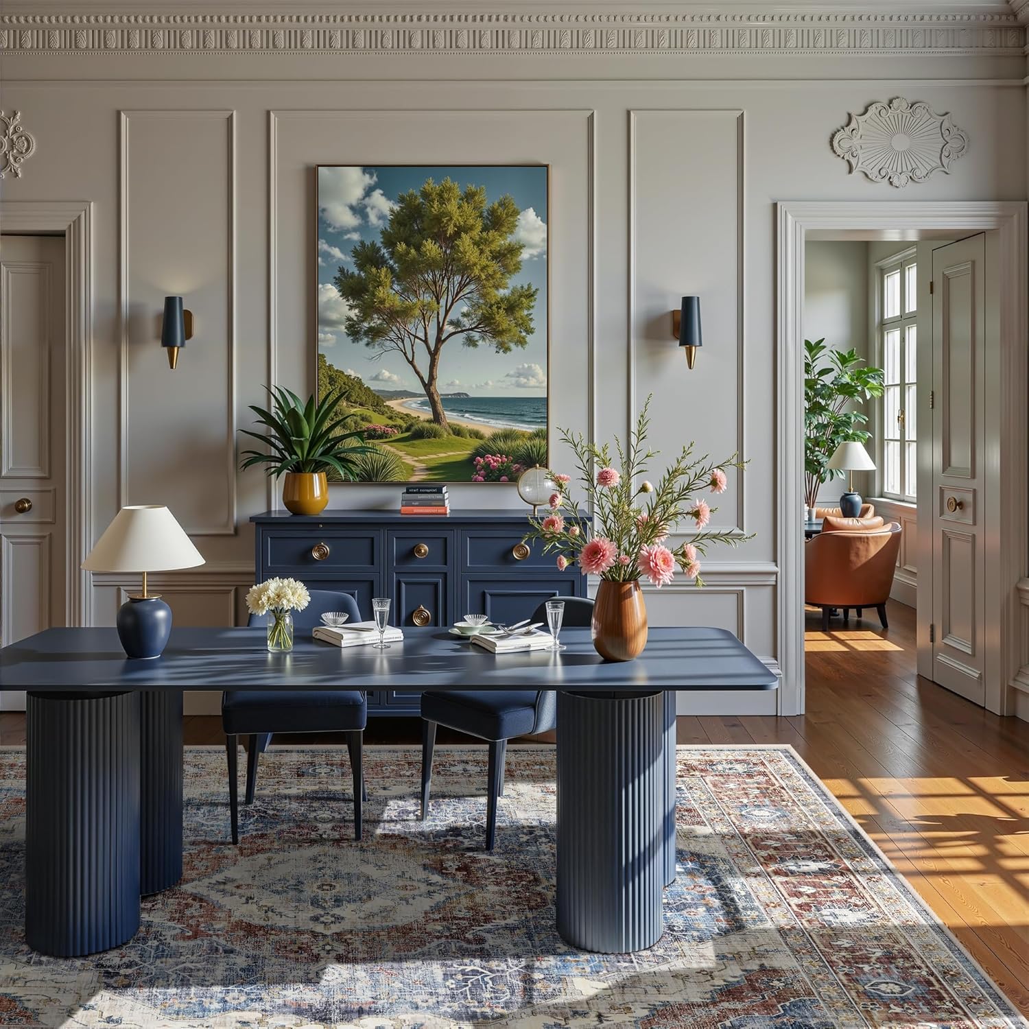 Deerly Rug 8x10 Area Rug Boho Washable Rug Large Rugs for Bedroom Living Room Vintage Non-Slip Oriental Distressed Carpet Indoor Stain Resistant(Border Brown/Navy Blue)