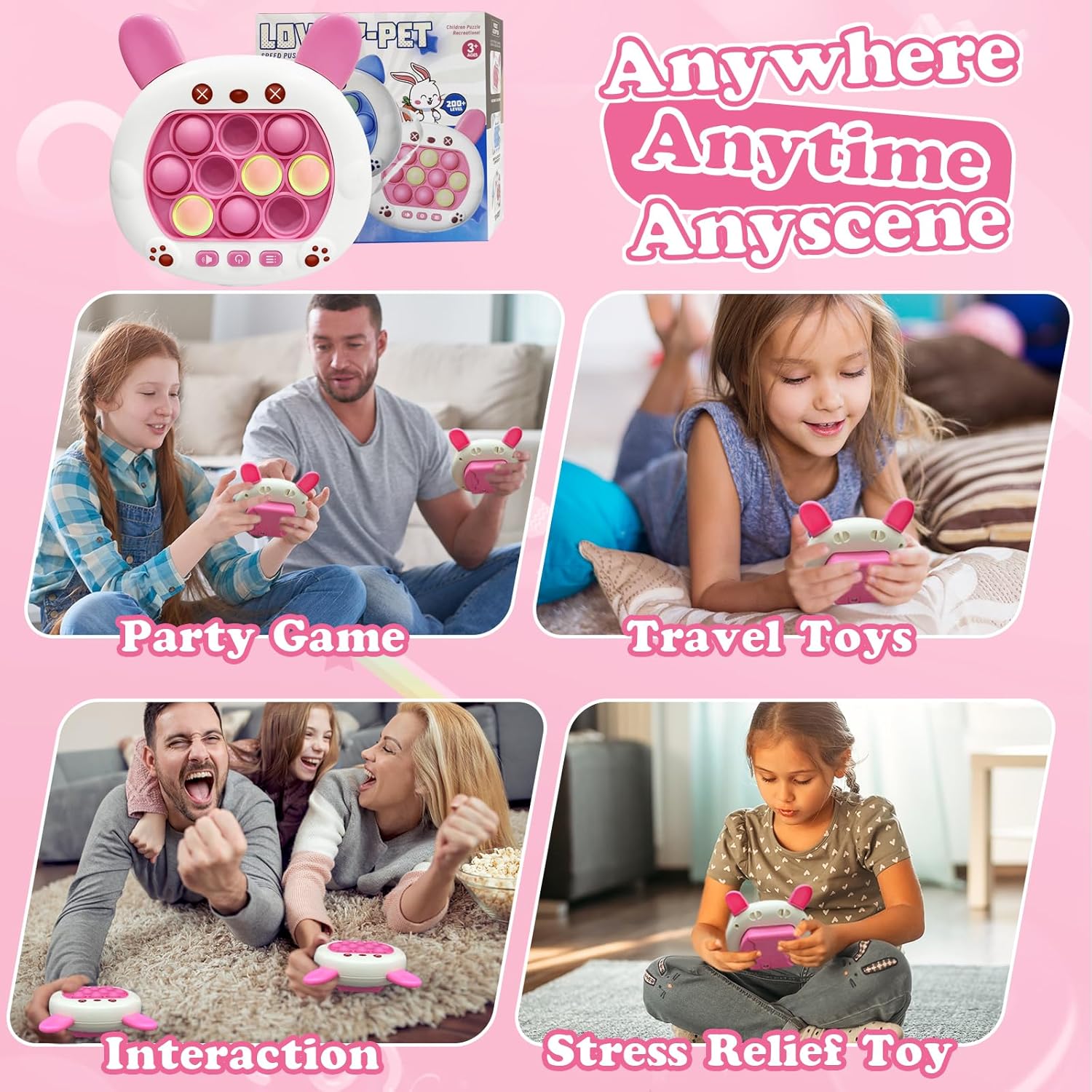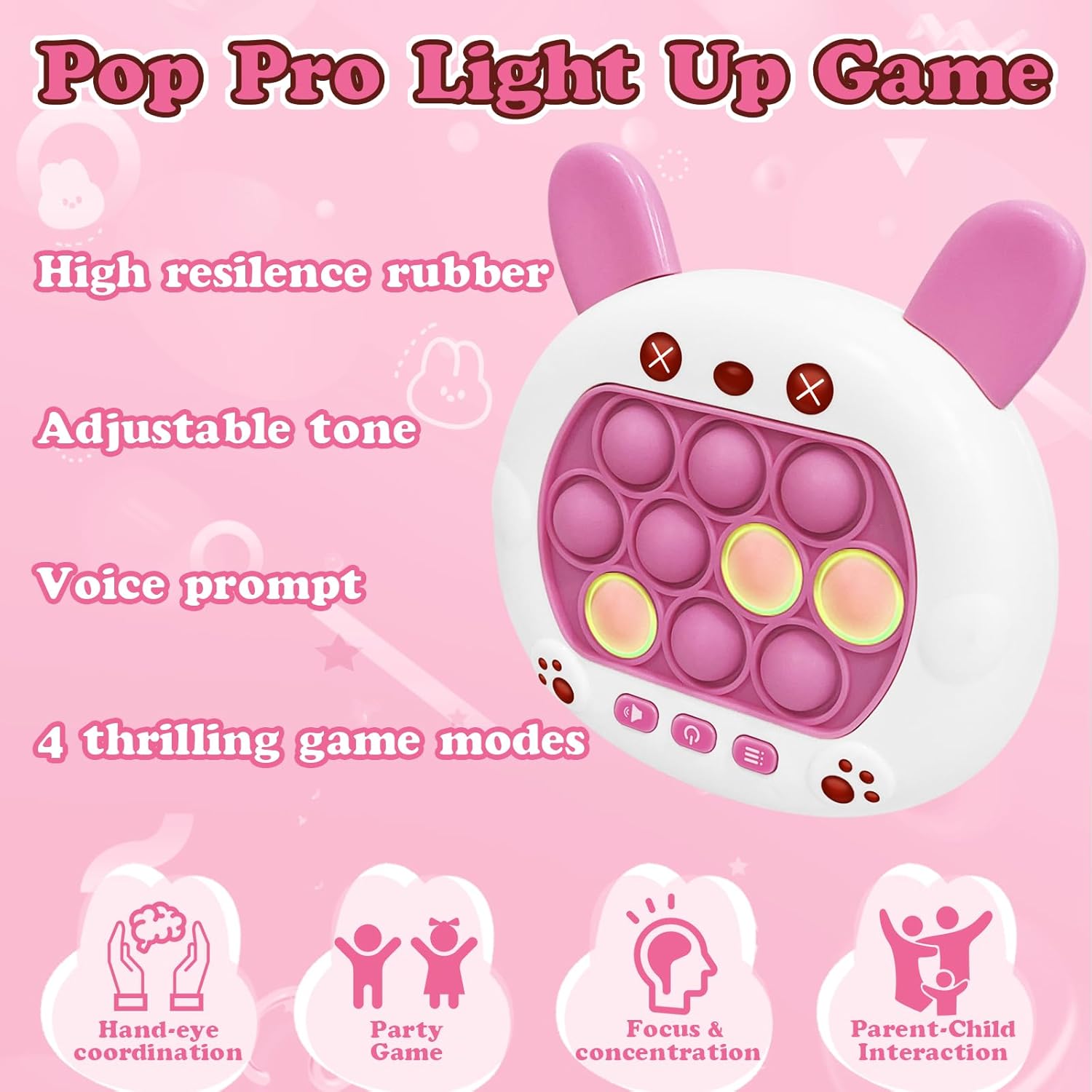 - 🎁【Perfect Light Up Pop Games Gift for Kids】-- Easter Gifts for Kids Rabbit, perfect tools for interactive game playing with friends. Push puzzle game console, a great gift idea for kids, teens and even adults, suitable for birthdays, parties, school classroom rewards, holidays like Thanksgiving, Halloween, Christmas. Come and experience it! Your kids will be in love with this bubble game handheld. Any problems abut light up fidget pop, please contact us, we will provide you with the appropri