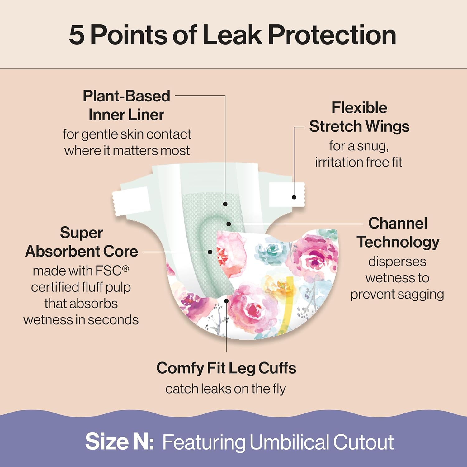 - UP TO 100% LEAK PROTECTION: Clean Conscious Diapers with Comfort Dry Technology and a wetness indicator offer 5 points of advanced leak protection. A super absorbent core absorbs wetness in seconds and channel technology disperses to prevent sagging
