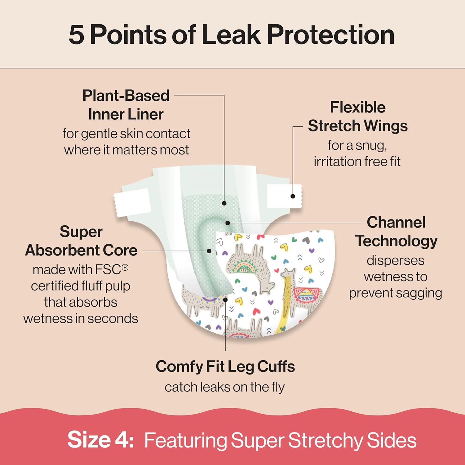 The Honest Company Clean Conscious Diapers for Delicate Skin | Up to 100% Leakproof | Hypoallergenic, Fragrance Free | Girl Prints | Super Club Box, Size 4 (22-37 lbs), 104 Count (Prints May Vary)