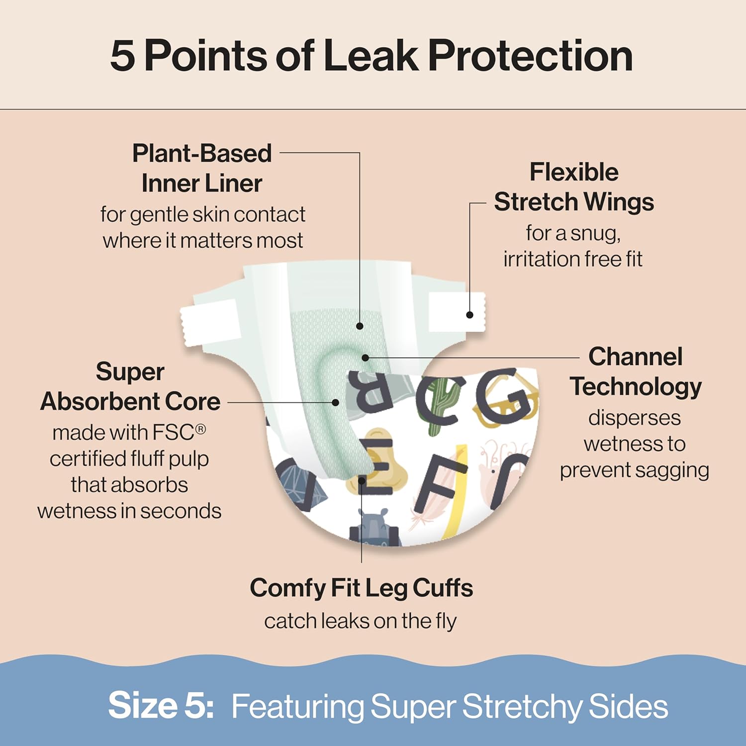 - OUR BEST FIT YET: Designed to move with your baby, Honest Clean Conscious Diapers feature comfy fit leg cuffs to catch leaks on the fly and flexible, stretchy wings that provide a snug, irritation-free fit. The super cute prints are an added bonus