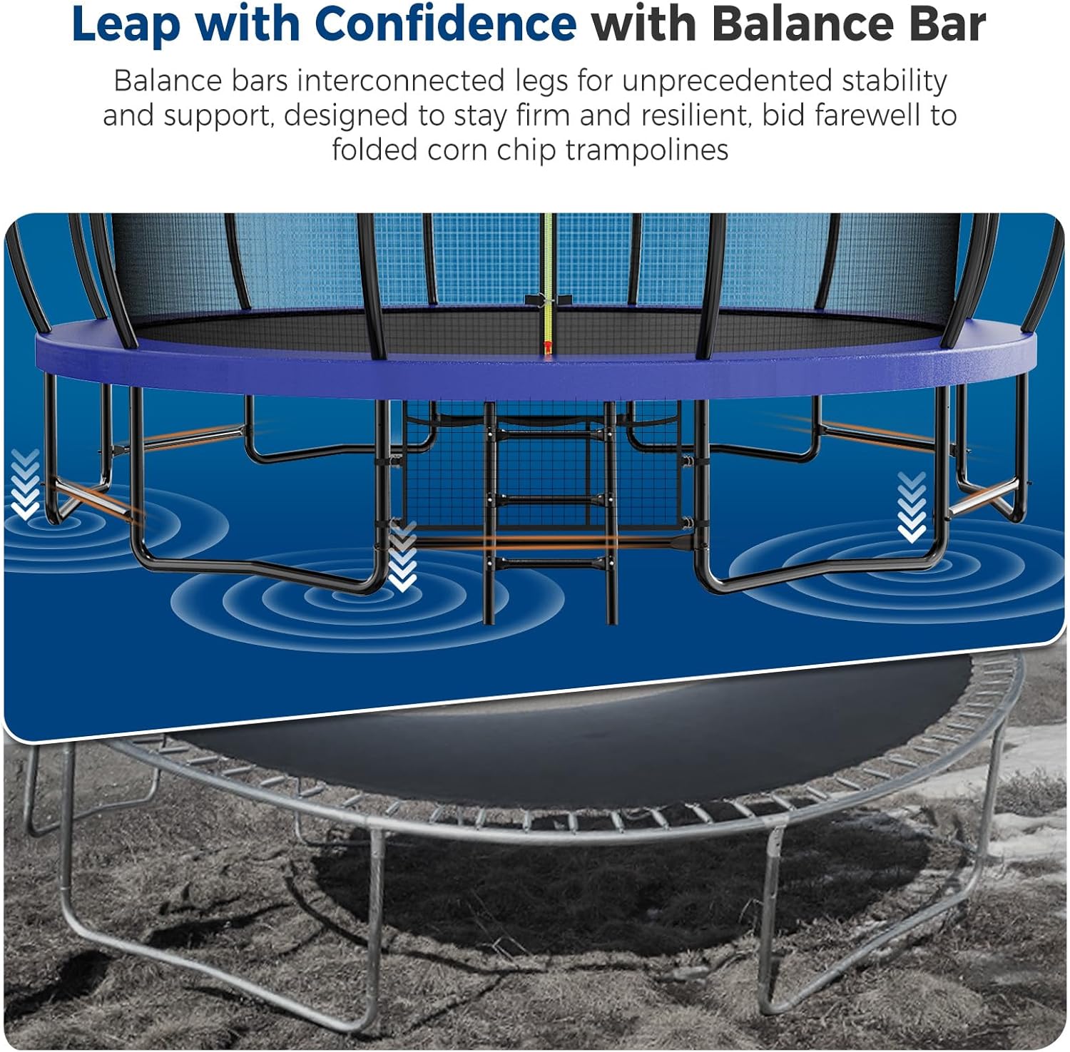 - 【A Professional-Sized Trampoline】Every kid dreams of having a huge trampoline, and our 16FT trampoline fulfills that dream. It's spacious enough for multiple kids and adults. Use it for outdoor movie nights with the family or whatever your heart desires