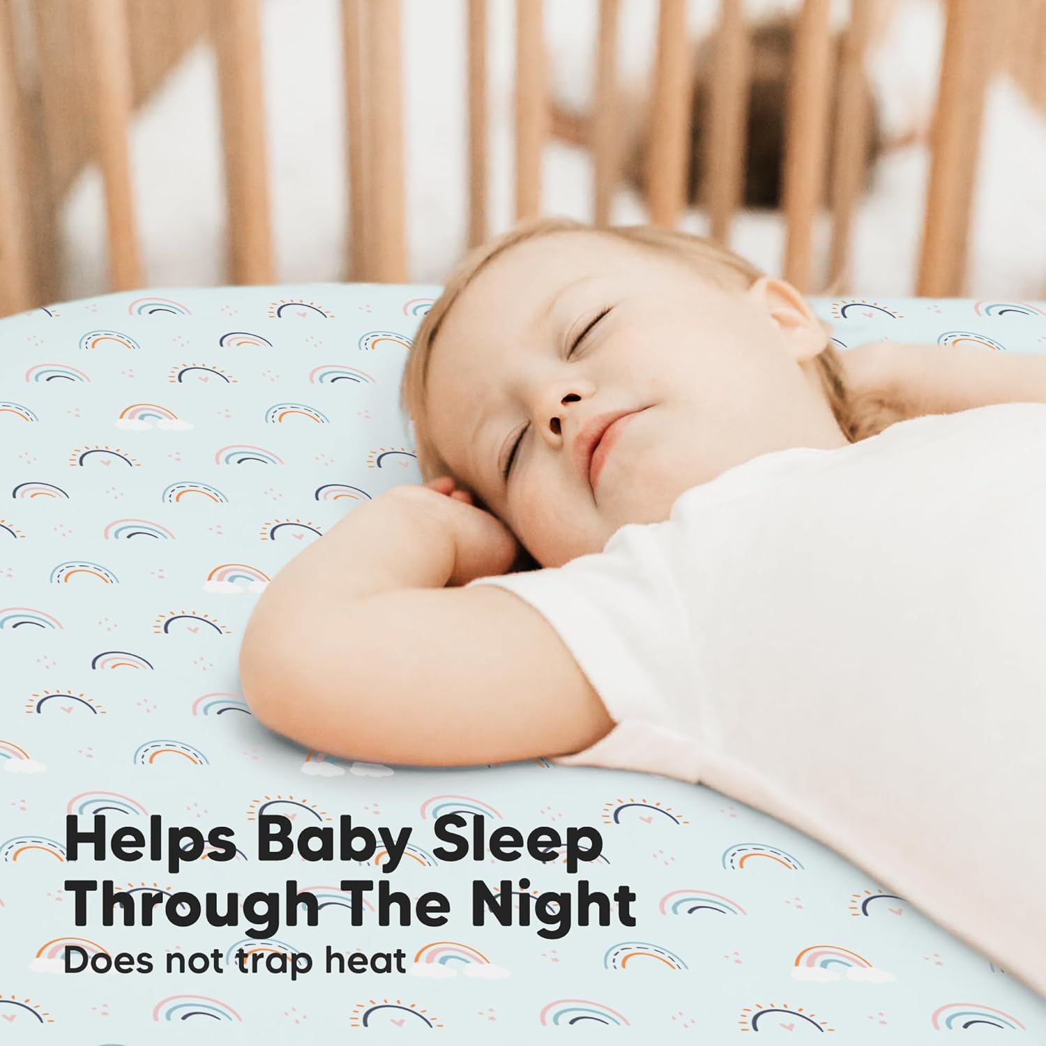 KeaBabies 2-Pack Baby Crib Sheets for Boys, Girls - 52x28 Viscose Derived from Bamboo Toddler Bed Sheets Neutral, Fitted Crib Mattress Cover for Standard Baby Bedding, Soft & Cozy (Jolly Rainbow)