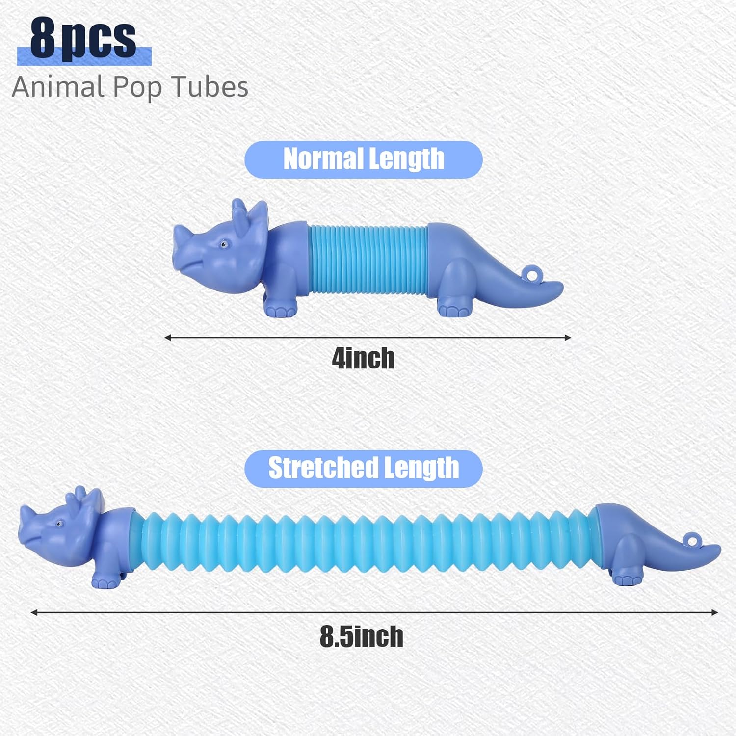 Shindel 8PCS Pop Tubes, Stress Relief Pop Tubes Mini Sensory Fidget Toys Dinosaurs Dolphins for Autism Kids Stocking Stuffers Classroom Treasure Box Prizes Goodie Bag Stuffers
