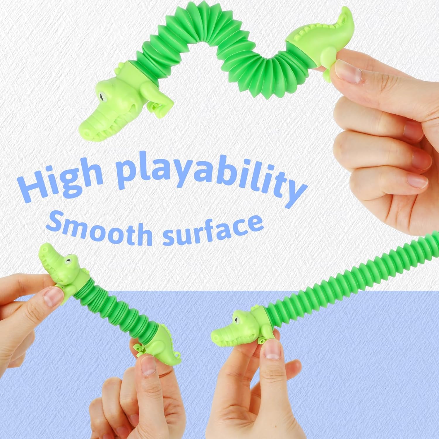 - Great Value Set - You will receive a total of 8 pop tube animals in 4 different colors and 6 unique types, featuring crocodiles, dolphins, sharks, bugs, and dinosaurs.