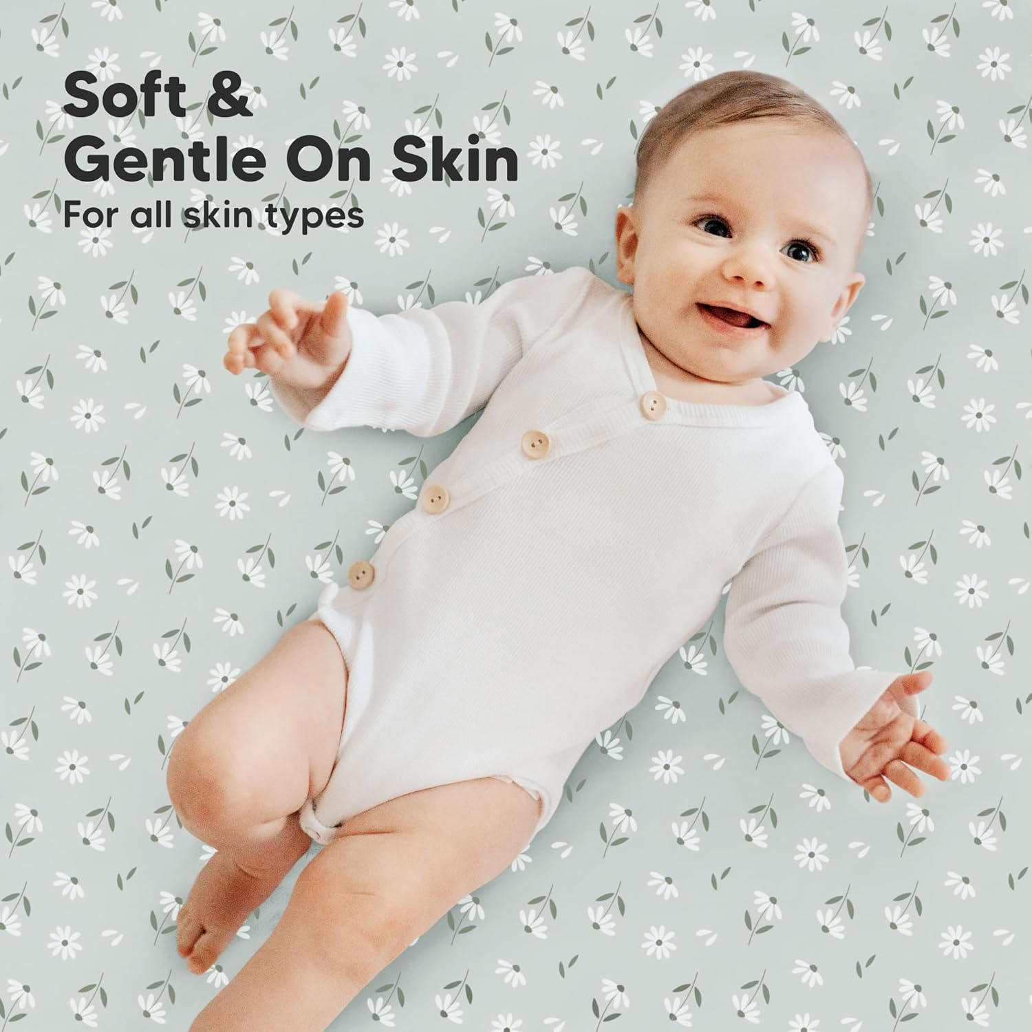 2-Pack Mini Crib Sheets Fitted - 38x26 Pack N Play Sheets for Pack and Play Mattress, Organic Cotton, Soft & Breathable Playard Bedding, Neutral Mini Toddler Bed Cover for Boys, Girls (Daisies)