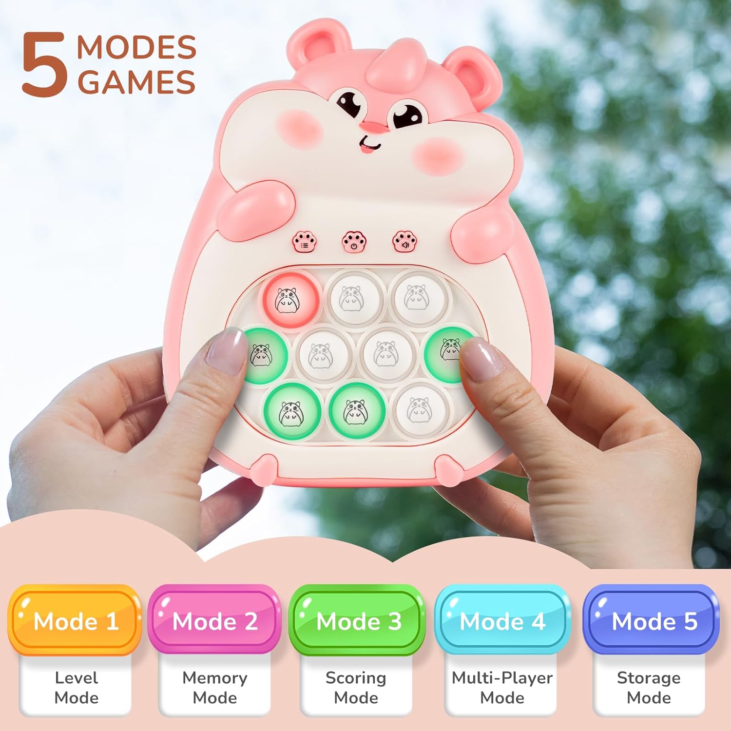 - Fast Push Game Kids Toy: Get ready for endless hours of fun with this pop fidget toy! With multi modes, including single-player challenges and multiplayer showdowns, this handheld fidget toy is perfect for all ages. Simply install then lights up dancing bubble at now