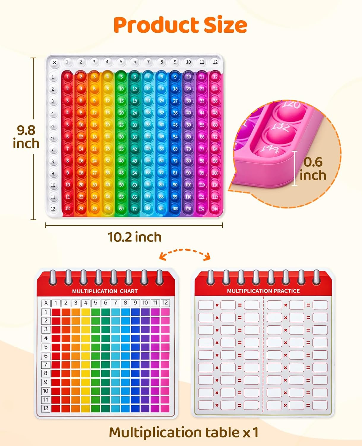 Multiplication Game Fidget Toys,9.8 x 10.2in Multiplication Fidget Table with Multiplication Chart for Kids,Math Manipulatives Kindergarten 1st 2nd 3rd 4th 5th Grade,Stress Relieving