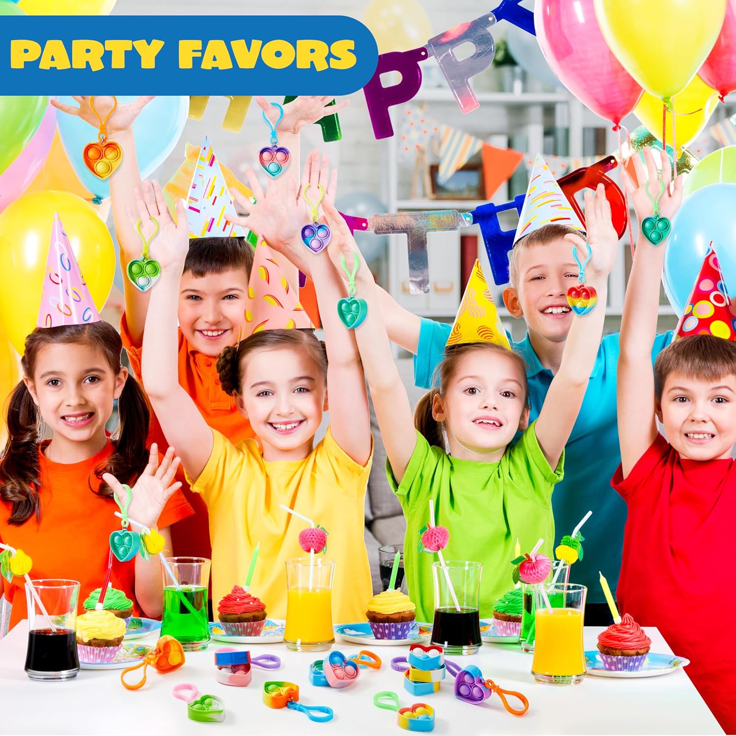 - 30 DIFFERENT COLOR COMBINATIONS: Enjoy a Variety Of Hues with Our 30 Heart Pop Toy Keychains, Adding a Burst Of Color to Your Daily Routine