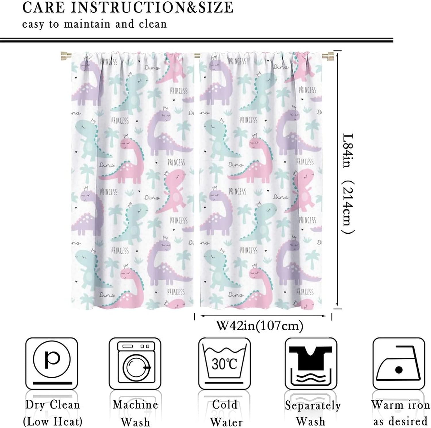 Kids Dinosaur Curtains for Boys Girls Bedroom Decor Cartoon Dino Colorful Cute Funny Animal Wildlife Printed Blackout Rod Pocket Window Drapes for Baby Nursery Playroom W42xL84in 2 Panels