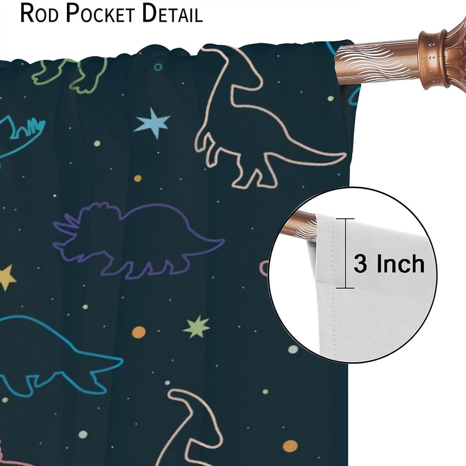Cartoon Colorful Dinosaur Curtains for Kids Boys Girls Home Decor, Astronaut Funny Outer Space Star Blackout Rod Pocket Window Drapes for Bedroom Living Room W42xL84in 2 Panels
