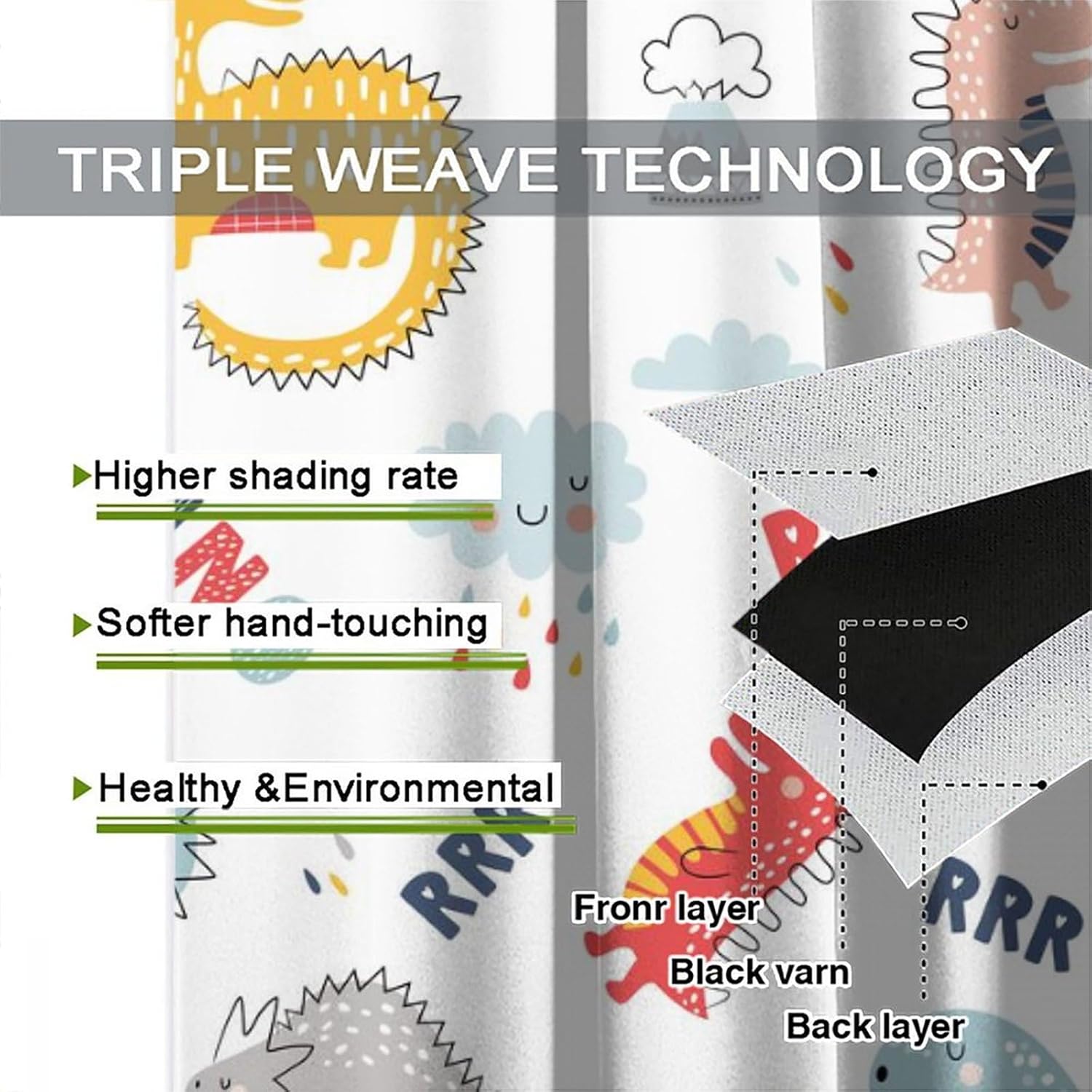 Cartoon Dinosaur Curtains for Kids Boys Girls Home Decor Colorful Cute Dino Animals Print Pattern Rod Pocket Blackout Window Drapes for Nursery Baby Bedroom Playroom W31.5xL63in 2 Panels