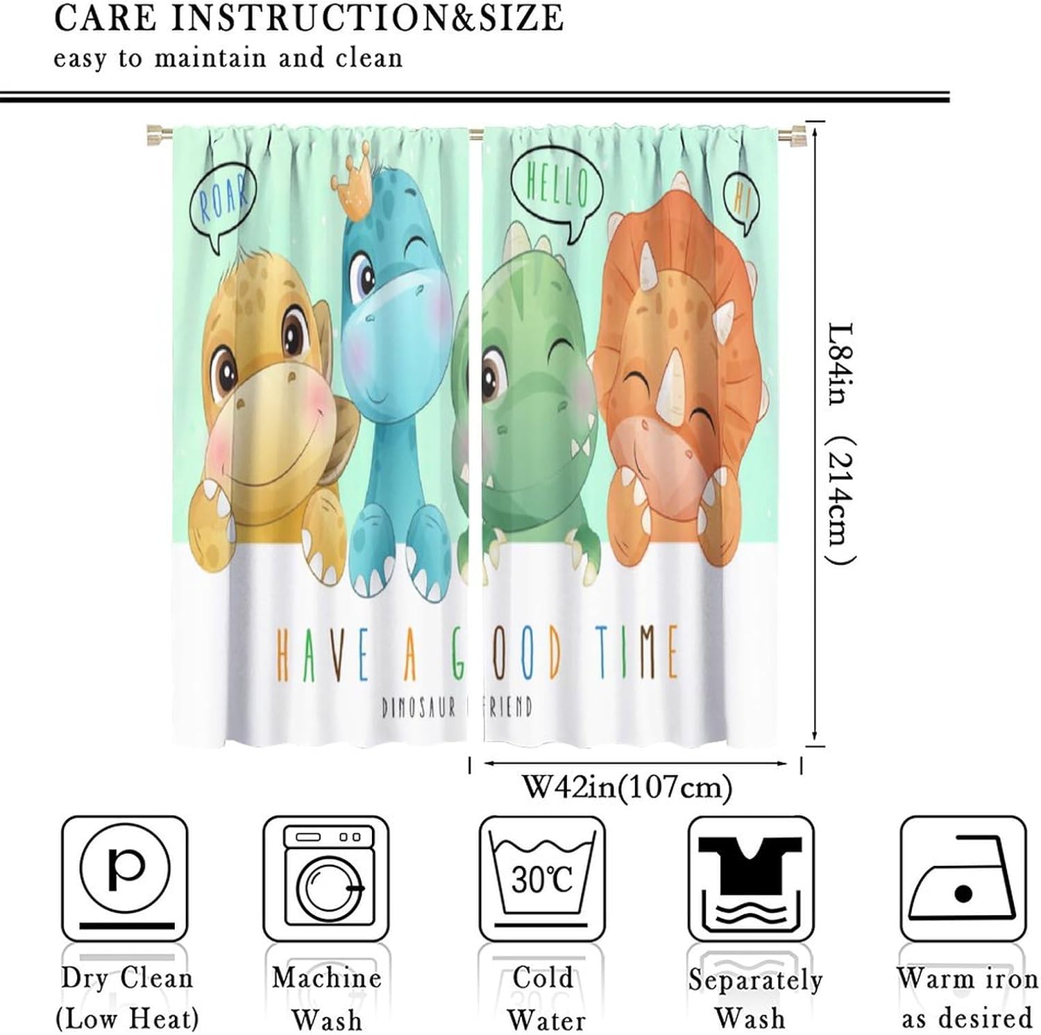 Kids Dinosaur Curtains for Boys Girls Bedroom Decor Cartoon Dino Colorful Cute Funny Animal Printed Blackout Rod Pocket Window Drapes for Baby Nursery Playroom Living Room W42xL84in 2 Panels