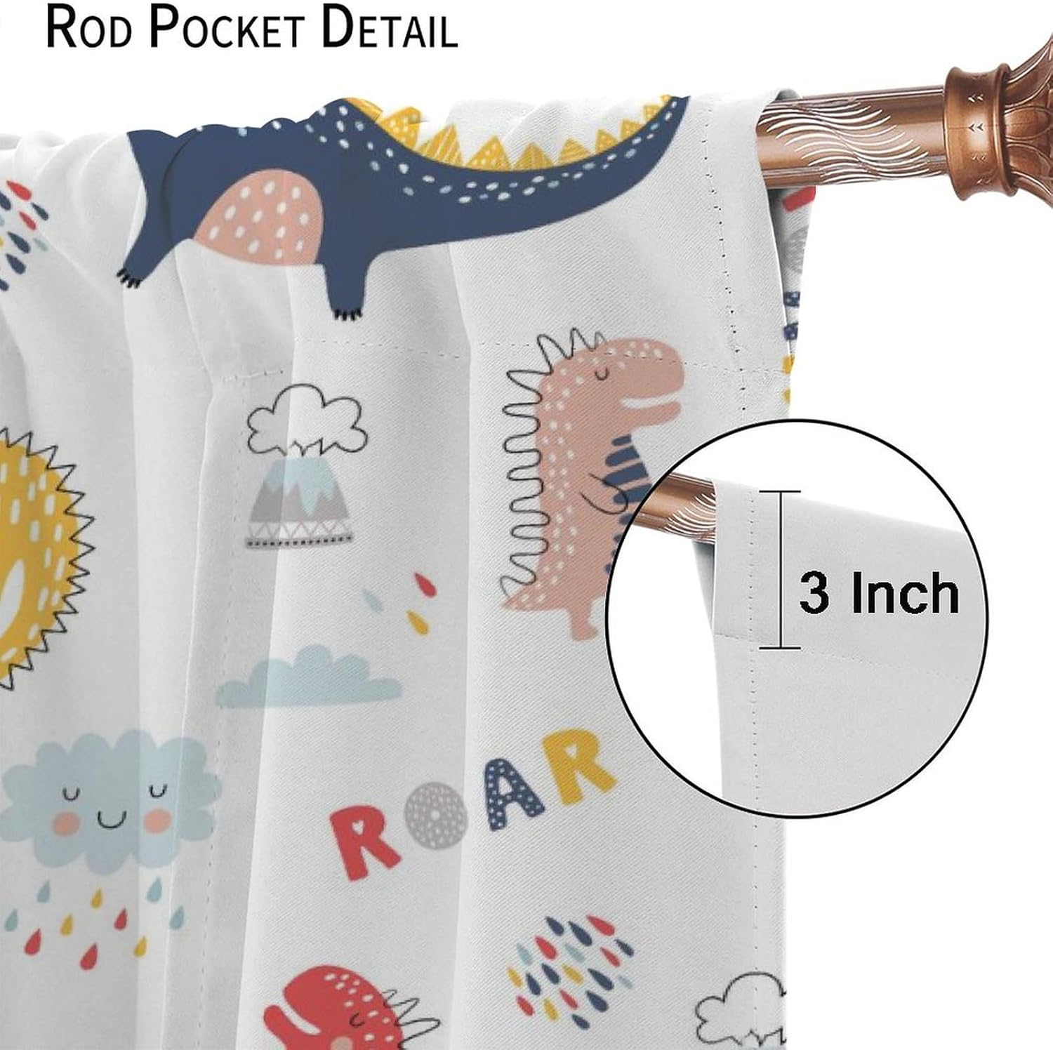 Cartoon Dinosaur Curtains for Kids Boys Girls Home Decor Colorful Cute Dino Animals Print Pattern Rod Pocket Blackout Window Drapes for Nursery Baby Bedroom Playroom W21xL54in 2 Panels