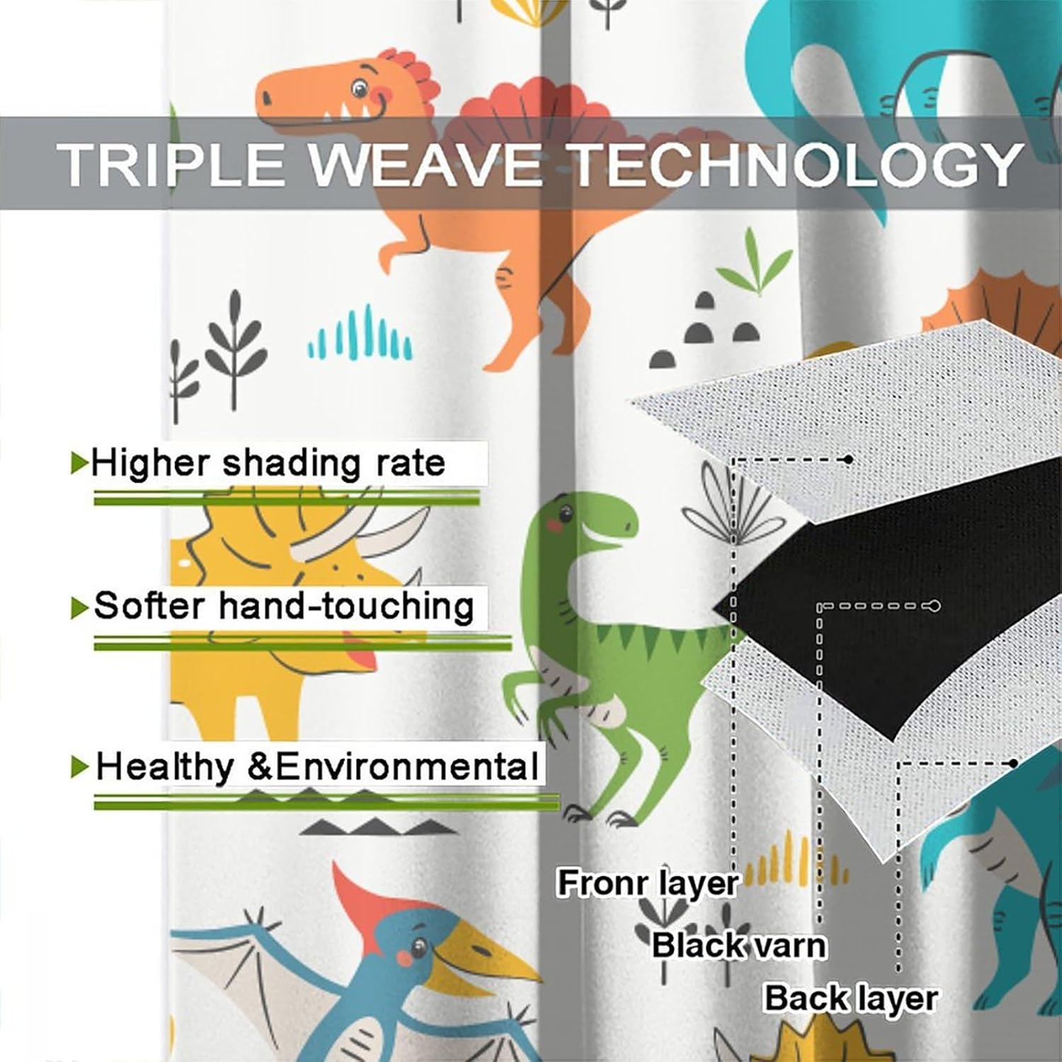 Kids Dinosaur Curtains for Boy Girl Bedroom Decor Cartoon Dino Colorful Cute Funny Animal Wildlife Printed Blackout Rod Pocket Window Drapes for Baby Nursery Playroom Living Room W42xL84in 2 Panels