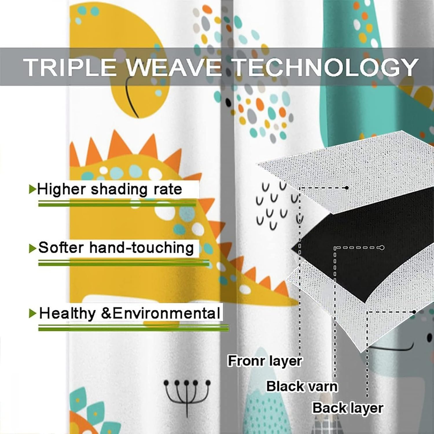 Dinosaur Curtains for Kids Boys Girls Home Decor Childish Cute Dino Animals Print Pattern Rod Pocket Blackout Window Drapes for Nursery Baby Bedroom Playroom W27.5xL63in 2 Panels