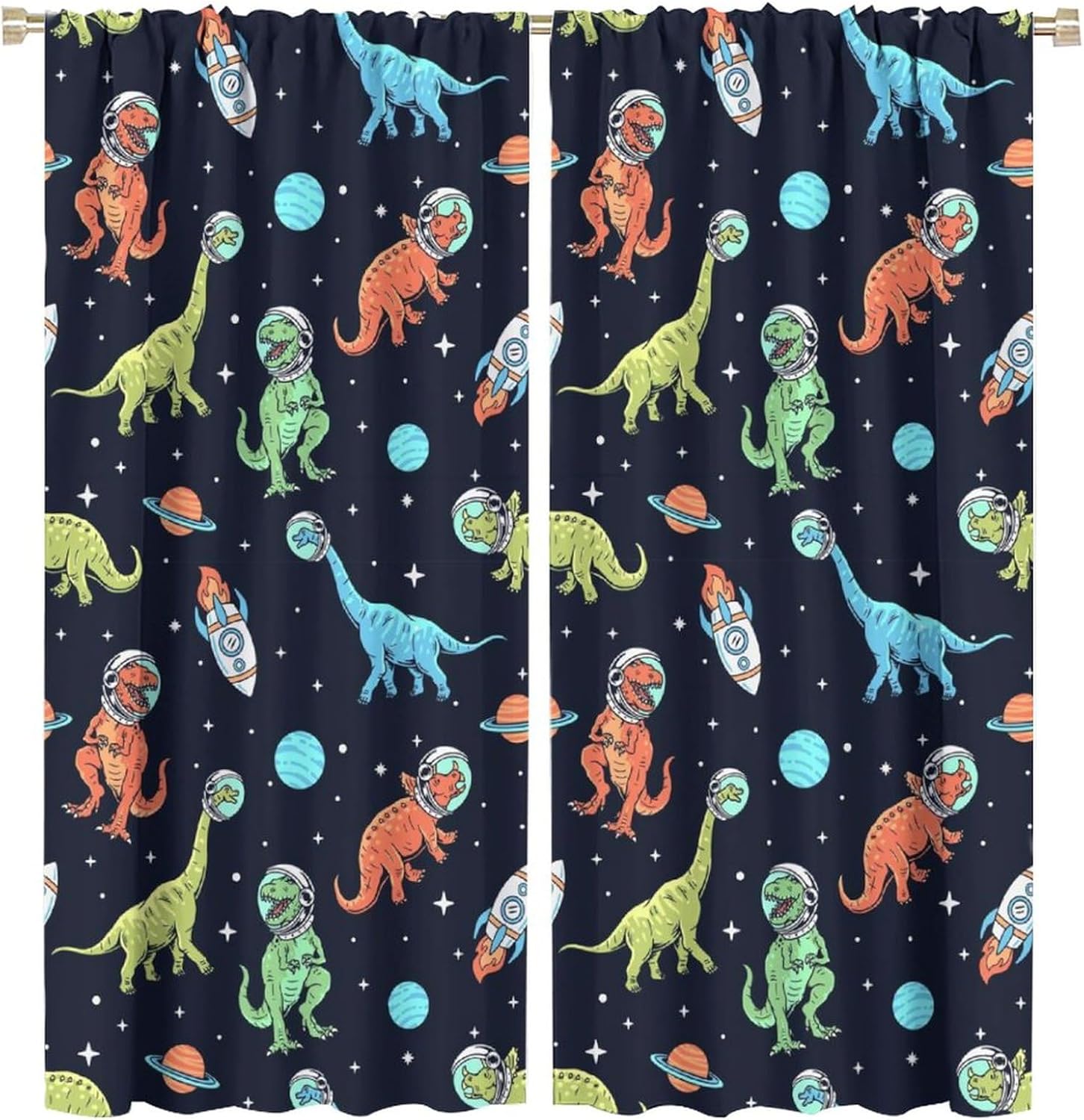 Cartoon Dinosaur Curtains for Kids Boys Girls Home Decor, Astronaut Rocket Funny Outer Space Blackout Rod Pocket Window Drapes for Bedroom Living Room W31.5xL72in 2 Panels