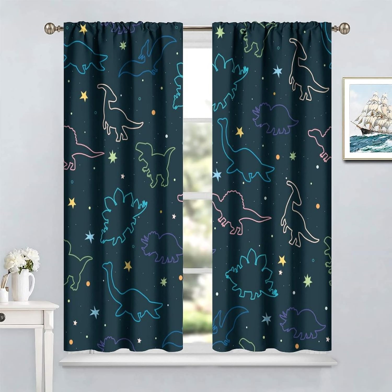 Cartoon Colorful Dinosaur Curtains for Kids Boys Girls Home Decor, Astronaut Funny Outer Space Star Blackout Rod Pocket Window Drapes for Bedroom Living Room W36xL63in 2 Panels