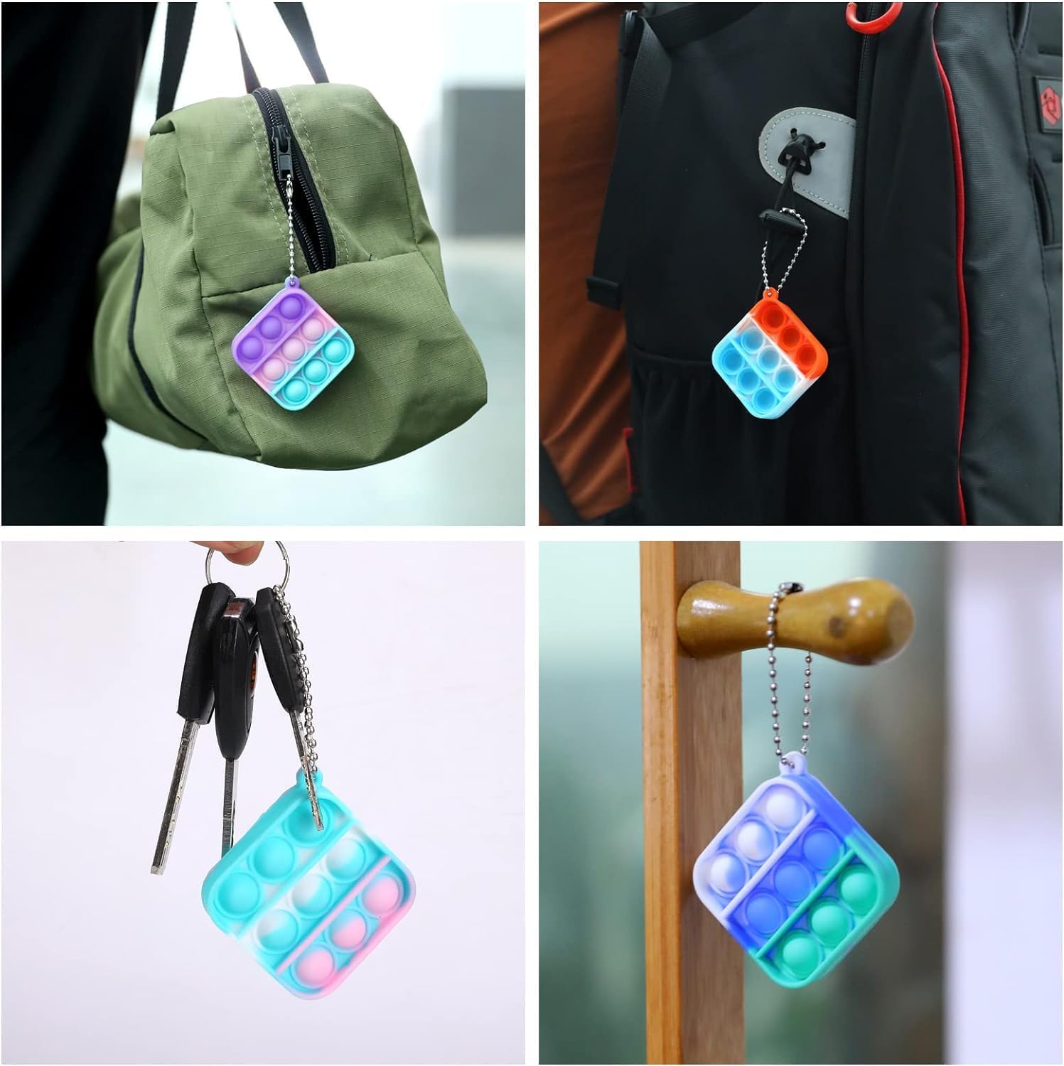 - 🔹 Widely Used: The Mini Pop it fidget toys are lightweight, durable,waterproof. You can use it as a key-chain and carry it with you all the time. Not only suitable for children, but also for adults, it helps to relieve anxiety and create a good atmosphere. When press the bubbles, the mini pop toy will make a slight popping sound, when all the bubbles on the front are squeezed, then flip it over and start again. Give you endlessly fun.