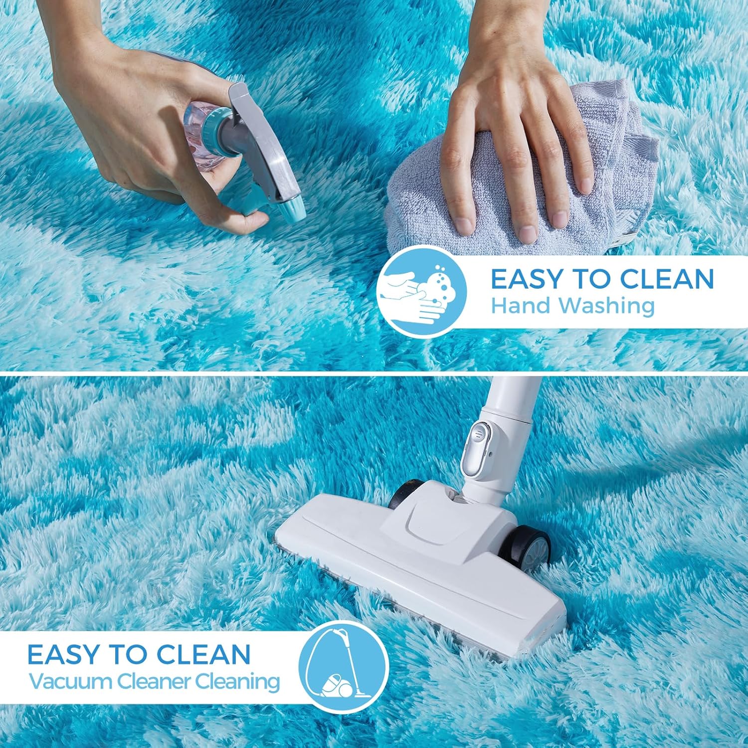- Easy To Clean - We recommend that you can directly shake off the impurities on the surface of the shaggy rug or use a vacuum cleaner for daily cleaning. For deep stains, you can choose to wash by hand . After cleaning, place it in a ventilated place to air dry. Note: Vacuum packed, please lay flat and will fluff up back in 2-3 days.