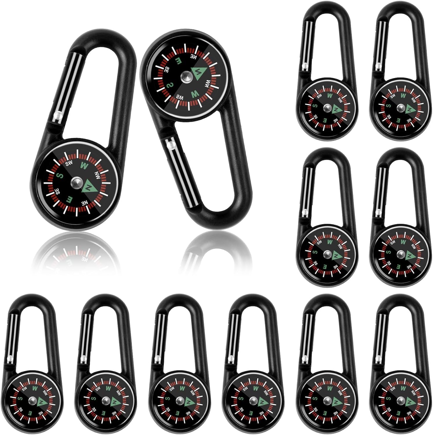 - Package Includes: You can get 12 pieces black carabiner compasses, which is enough for your needs. It is the perfect partner for your life, you can take it with you when you are travelling. With easy rotation including degree markings and an orienting arrow, this compass carabiner clearly reads the label on the map and it also comes with a magnifying function.