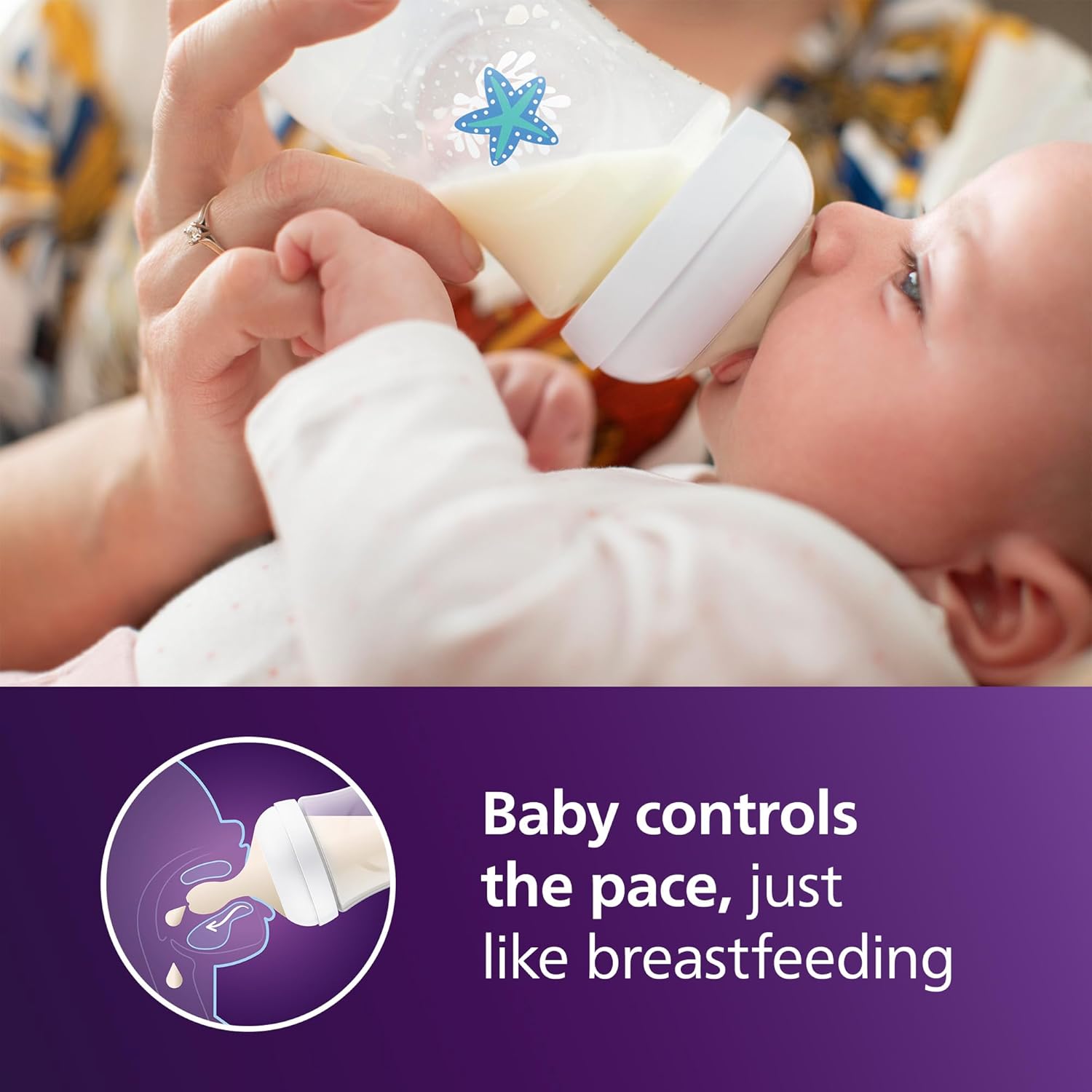 - Philips Avent Natural bottle supporting your baby's natural drinking rhythm: baby controls the pace of the milk flow, just like breastfeeding